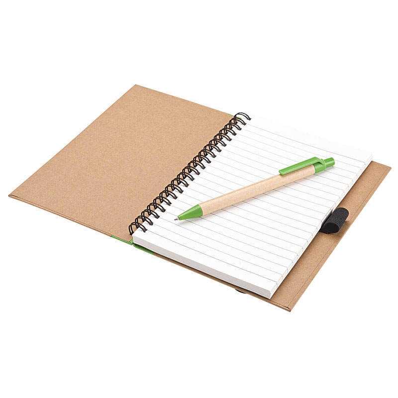 Hard-cover junior-size notebook with unique dot design includes paper pen, 80 sheets of lined paper and elastic closure.