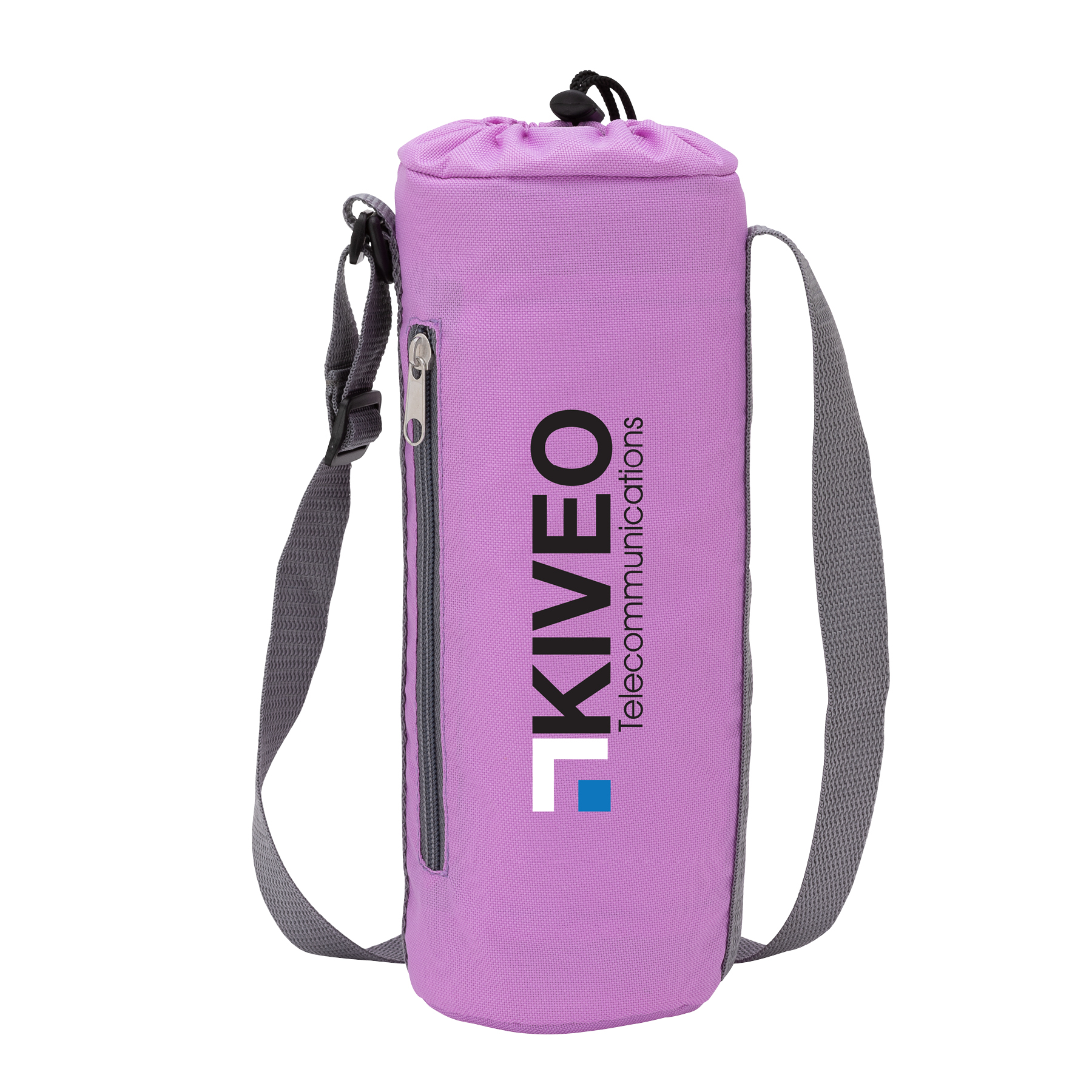 The Hydro Sling Insulated Bottle Carrier has a 1" x 52 1/4" adjustable strap that makes it easy to carry crossbody or over your shoulder. The PEVA lining is heat sealed to prevent leaking and you can store small items in the front 6 3/4" x 4" zippered pocket (bottle curvature may restrict some pocket space). Perfect for long hikes or sightseeing, use the locking drawstring to ensure a tight closure. Fits standard 24oz./700ml water bottles, wine bottles as well as larger capacity bottles up to 3 9/16" in diameter. The Hydro Sling Insulated Bottle Carrier is a great gift for your friends, associates and business partners.
