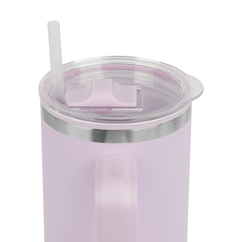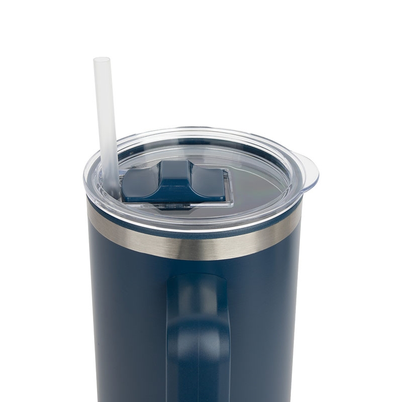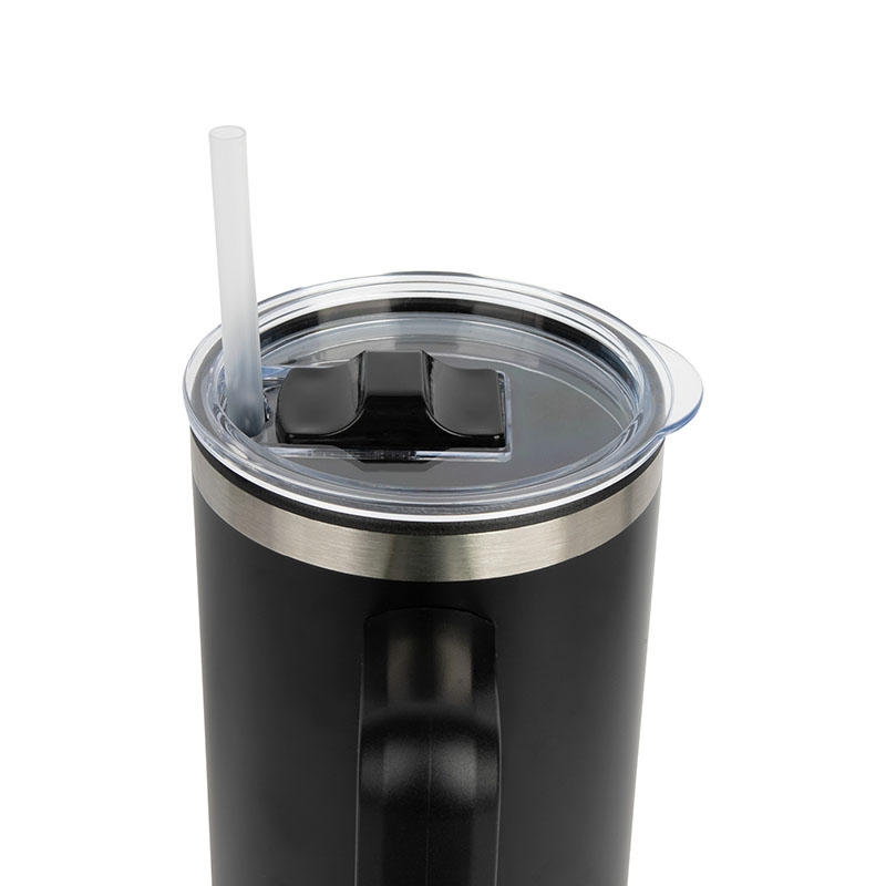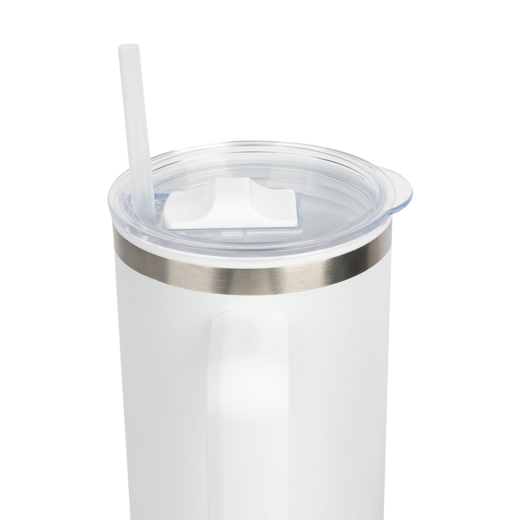 The Izzy 40 oz. Travel Mug is the perfect tumbler for those who love to indulge in their favorite beverages, or simply want to stay hydrated throughout the day without the need for frequent refills. The exterior of the mug is made of durable stainless steel material which can withstand the wear and tear of daily use, and the interior of the mug is lined with plastic which keeps the mug lightweight for carrying around. And, its tapered base allows it to fit most cup holders from a car to a baby carriage. The Izzy comes with a transparent push-on lid with slide closure to reduce spills and the included drinking straw is a great option for those who like to sip while on the go. FDA compliant and BPA Free.