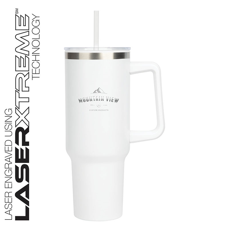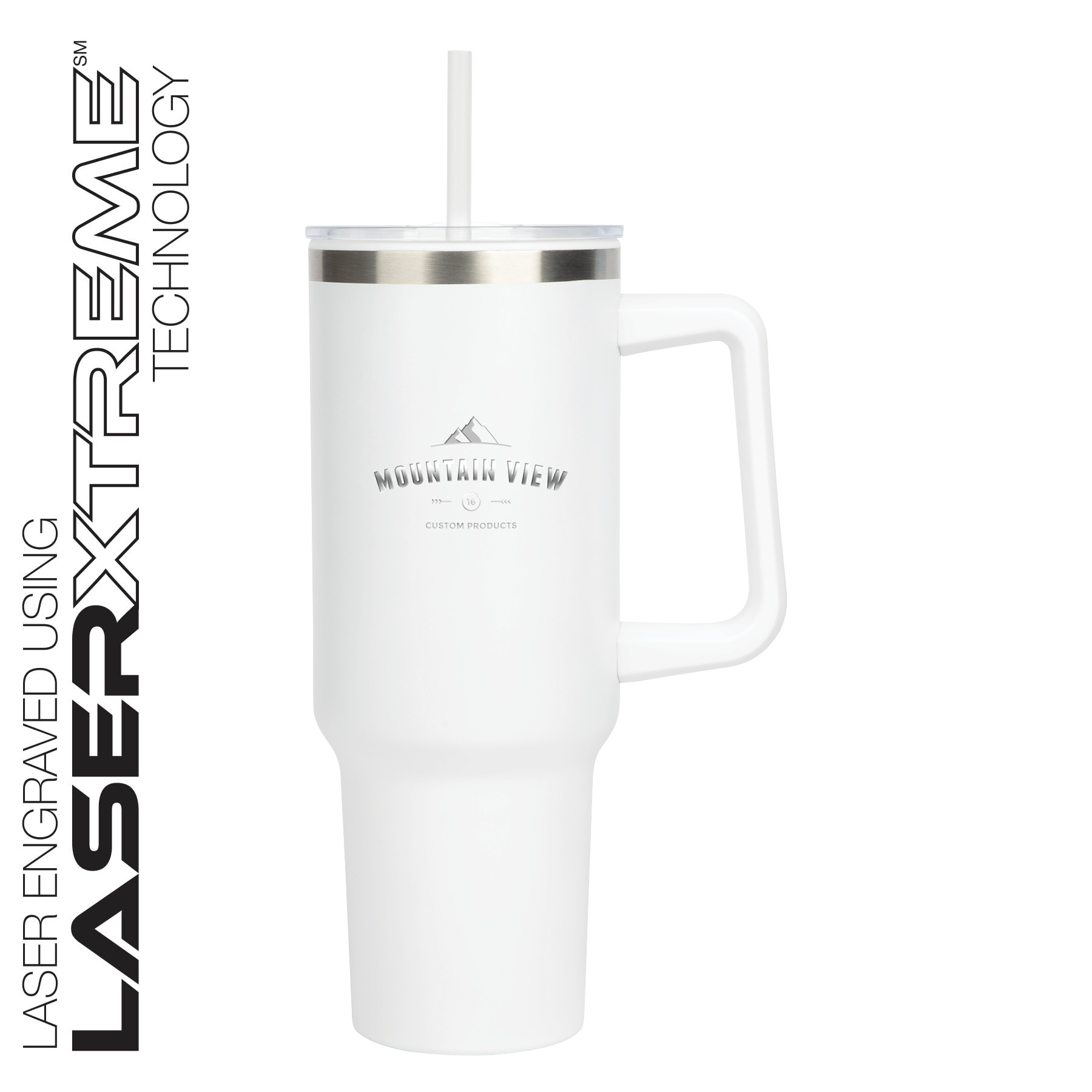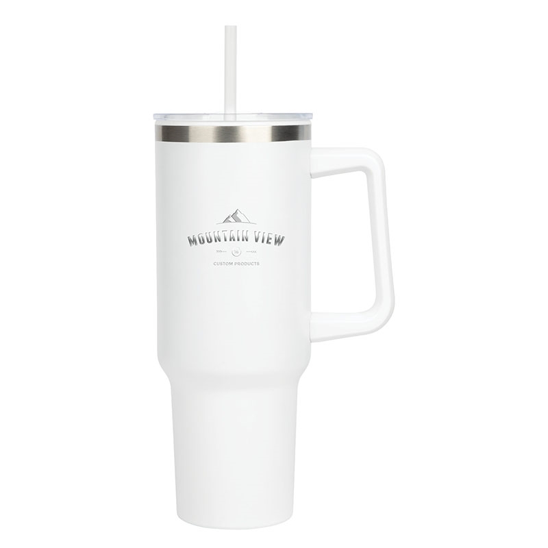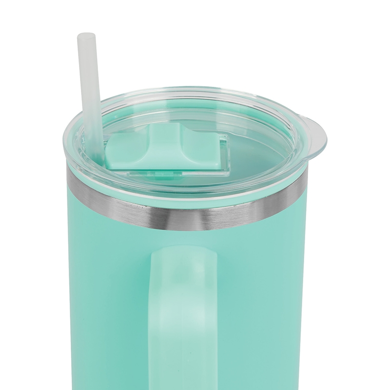 The Izzy 40 oz. Travel Mug is the perfect tumbler for those who love to indulge in their favorite beverages, or simply want to stay hydrated throughout the day without the need for frequent refills. The exterior of the mug is made of durable stainless steel material which can withstand the wear and tear of daily use, and the interior of the mug is lined with plastic which keeps the mug lightweight for carrying around. And, its tapered base allows it to fit most cup holders from a car to a baby carriage. The Izzy comes with a transparent push-on lid with slide closure to reduce spills and the included drinking straw is a great option for those who like to sip while on the go. FDA compliant and BPA Free.