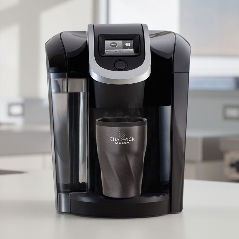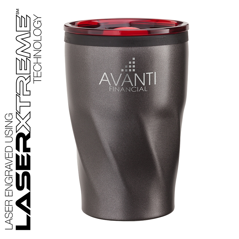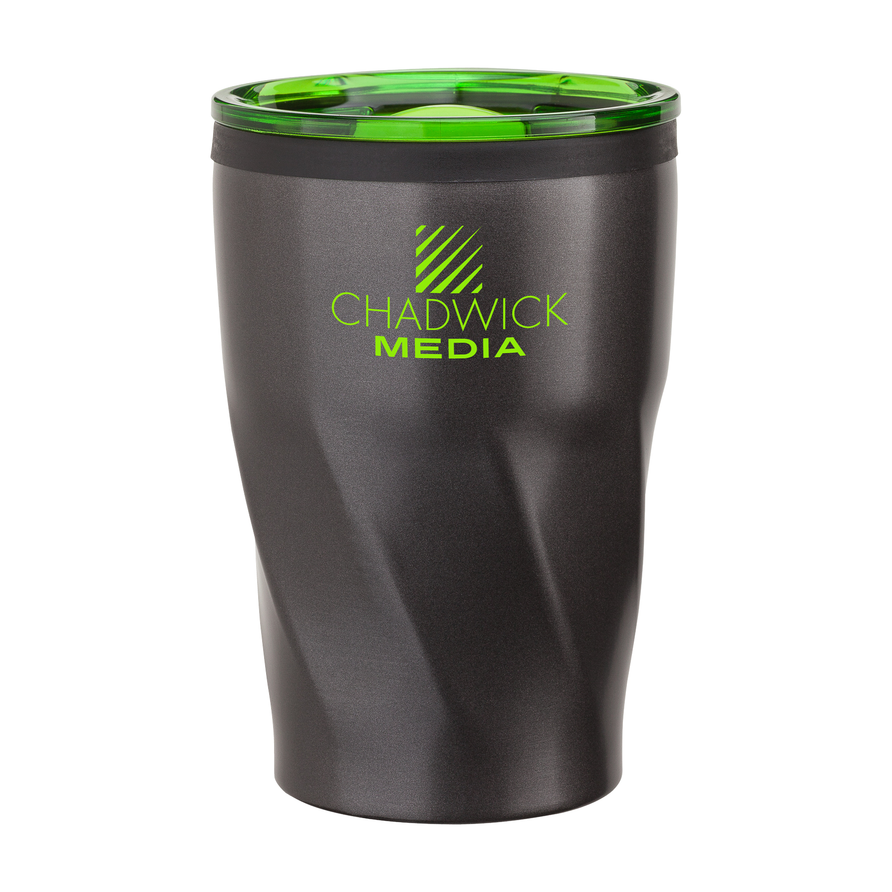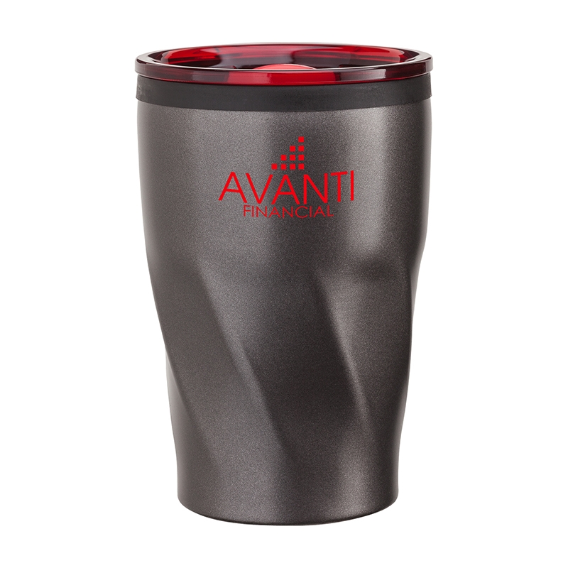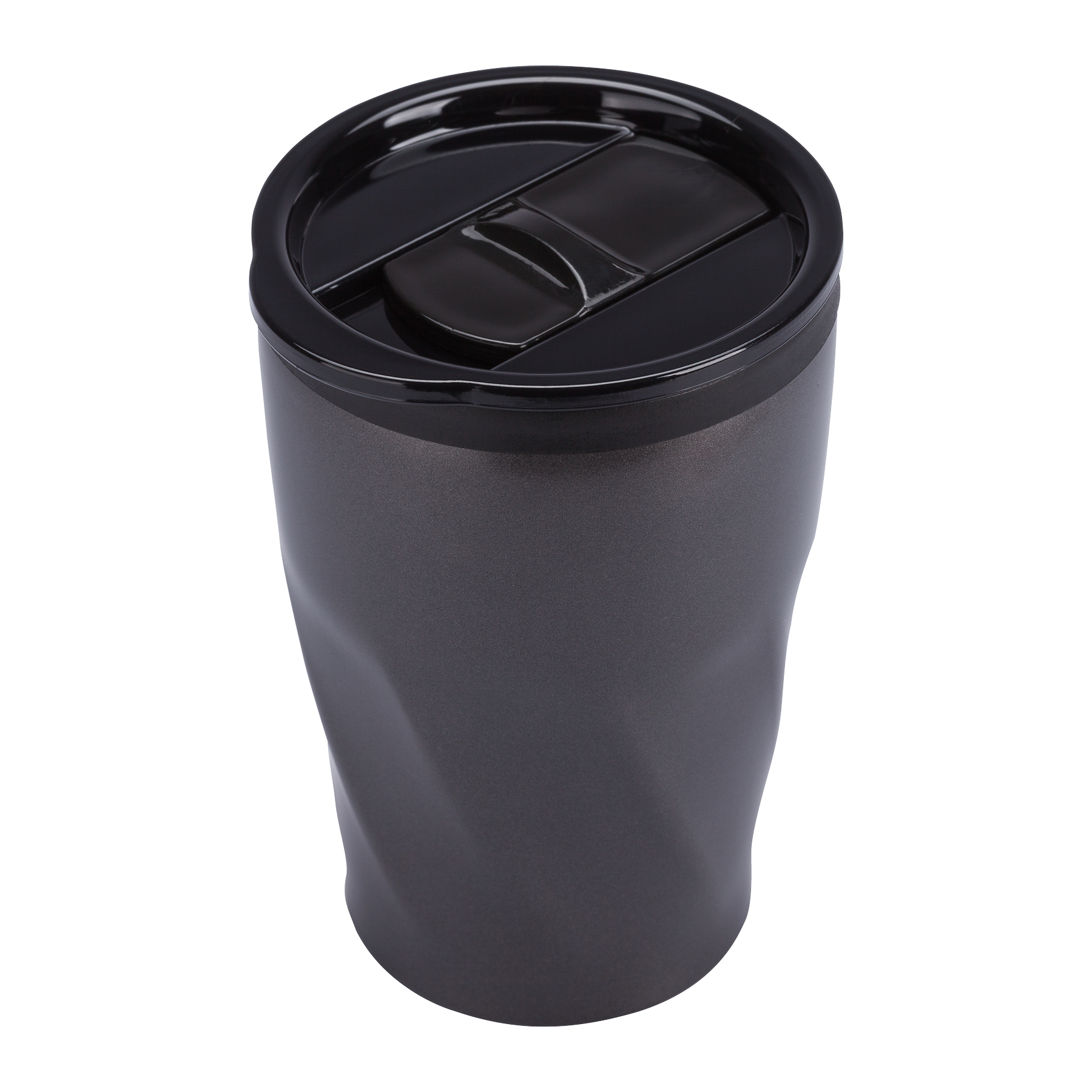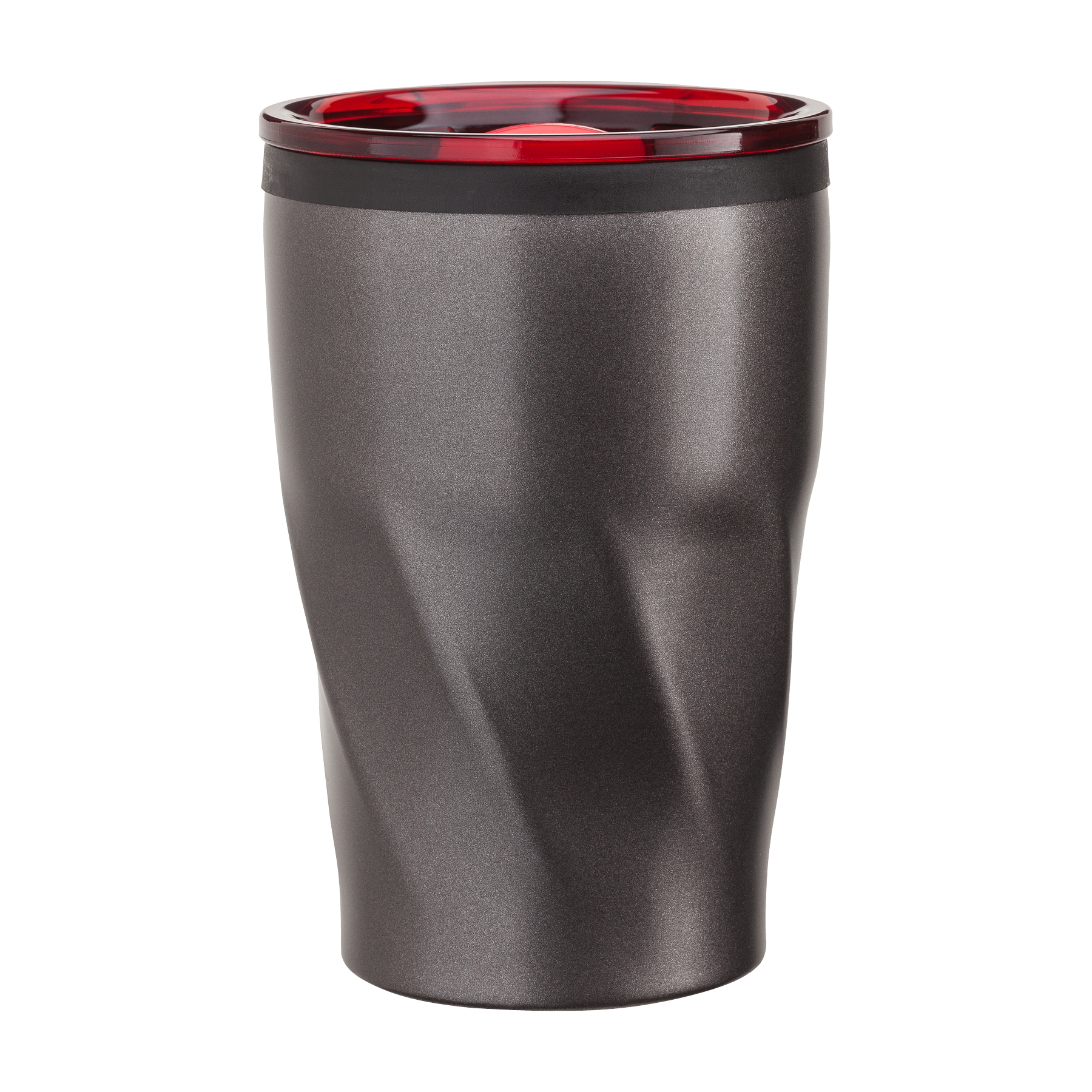 The Kafé 12 oz. coffee tumbler is the perfect fit for most single serve coffee brewing systems. The double wall construction with a stainless steel outer wall protects your hand from the heat while you enjoy a cup of joe. The translucent colored easy sip lid with a silicone ring and sliding opening to prevent spillage, couples with the attractive gunmetal coating and comfortable twist grip. This cup's non-slip base makes it the perfect desk companion, or take it in your car as it fits most car cup holders. FDA compliant and BPA free.