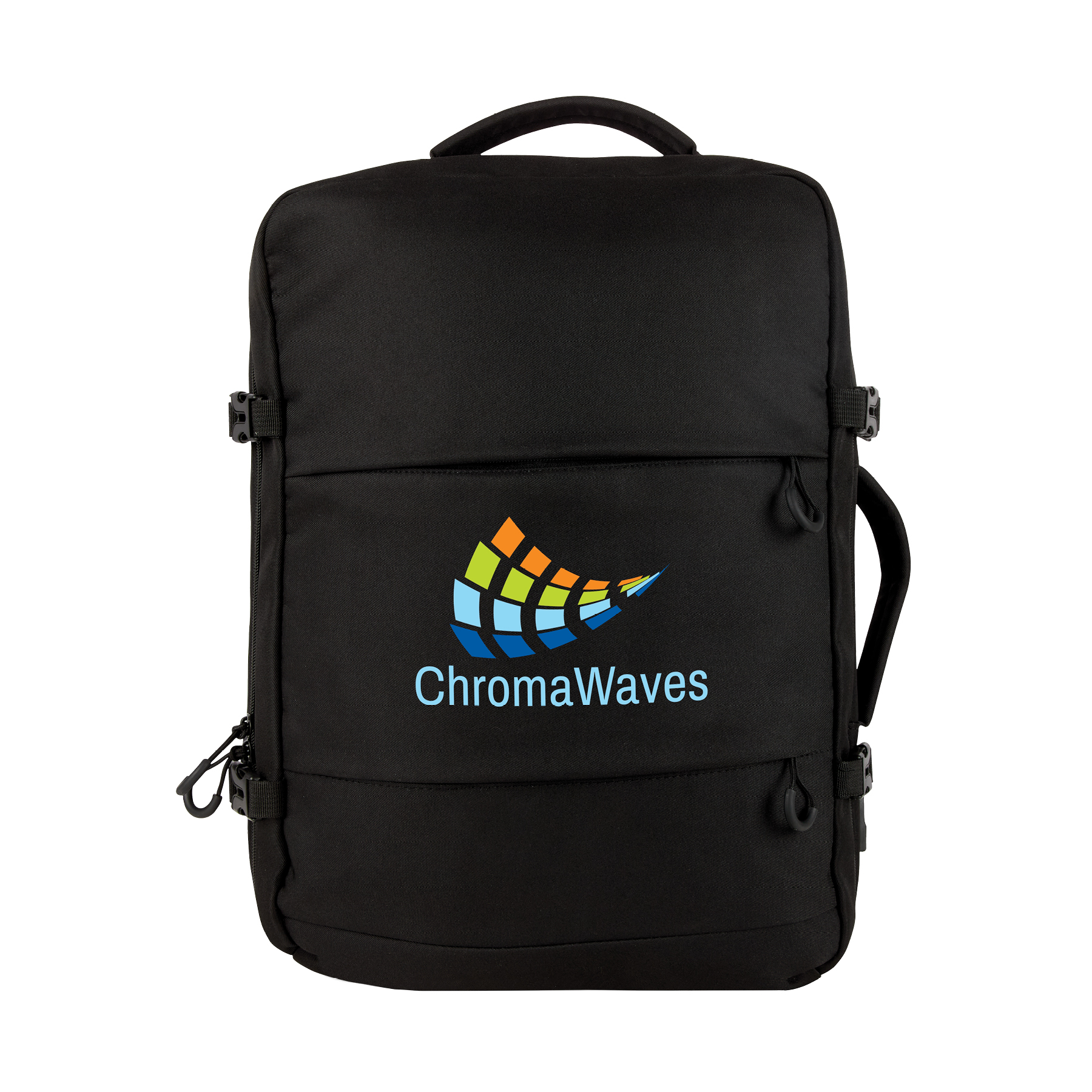 The Luca Overnighter Backpack is designed to meet the needs of modern travelers and professionals, offering both practicality and style. Crafted from durable 420D twill polyester material, this fully lined travel bag provides long-lasting performance while maintaining a sleek appearance. It has a dedicated zippered 17" laptop compartment and its spacious zippered main compartment features built-in organizer pockets to keep your belongings neat and accessible. For added convenience, this backpack includes an external USB port with a charging cable, making it easy to keep devices powered on the go and its two exterior zippered pockets provide quick access to smaller items. Comfort is prioritized with padded top and side carry handles and air mesh padded backside and backpack straps. The side buckle straps provide added security while the trolley strap provides easy airport transit, all making the Luca a perfect choice for both commuting and overnight travel.
