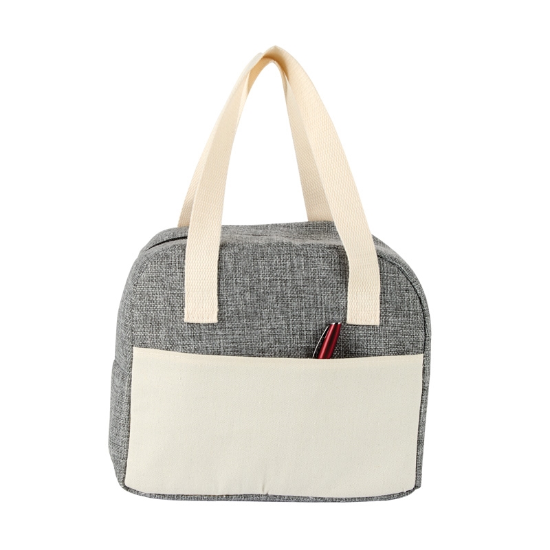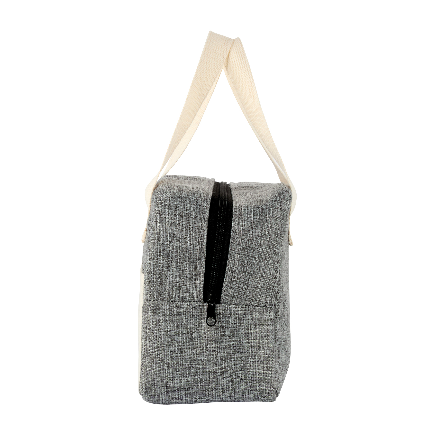 The Nika 6-Can Lunch Cooler combines practicality and style, making it an ideal companion for work, school, or casual outings. Its zippered main compartment is insulated with aluminum foil and 2mm foam lining to keep your food and beverages fresh. With enough space to hold a personal lunch, this cooler offers the convenience you need for meals on the go. A cotton front pocket provides additional storage for utensils, napkins, or small essentials, keeping everything you need within easy reach. The cooler is easy to carry, thanks to its sturdy 1" x 13 1/2" cotton handles that provide convenience and durability. Whether you’re packing for a lunch break or a picnic, this cooler is a reliable and stylish choice for your everyday needs.