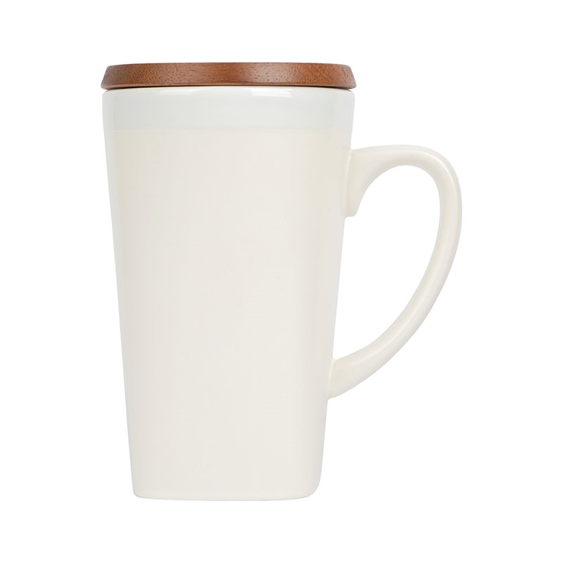 The 16 oz. Parana Ceramic Mug is a stylish and functional addition to your morning routine or cozy afternoon tea sessions with its elegant two-tone design. The mug features an unique square bottom base design, matte exterior body finish with a glossy top rim and interior. The natural acacia wood lid not only adds an elegance and organic look to the mug but also keeps the temperature of your favorite tea or coffee hot for longer. FDA Compliant and BPA Free.