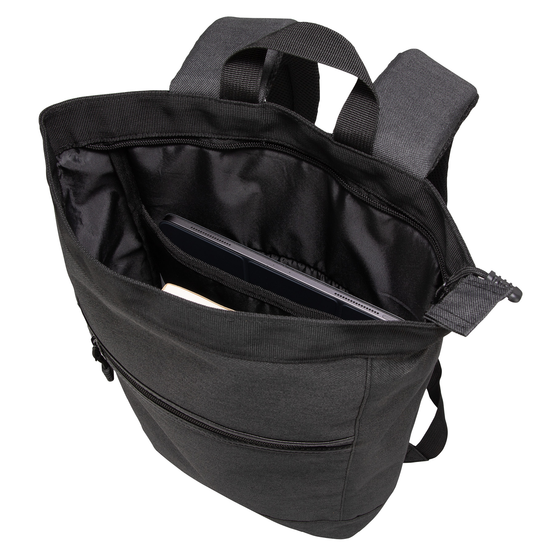 The Powell Backpack has a modern and chic design. Store your small items in the front zippered pocket for easy access. This backpack has a zippered closure on the main compartment and a padded 10 1/2" wide internal pocket to hold a small laptop or tablet. Wear the Powell backpack with its padded shoulder straps or carry it as a tote with its carry handle as you head to work or your favorite coffee shop.