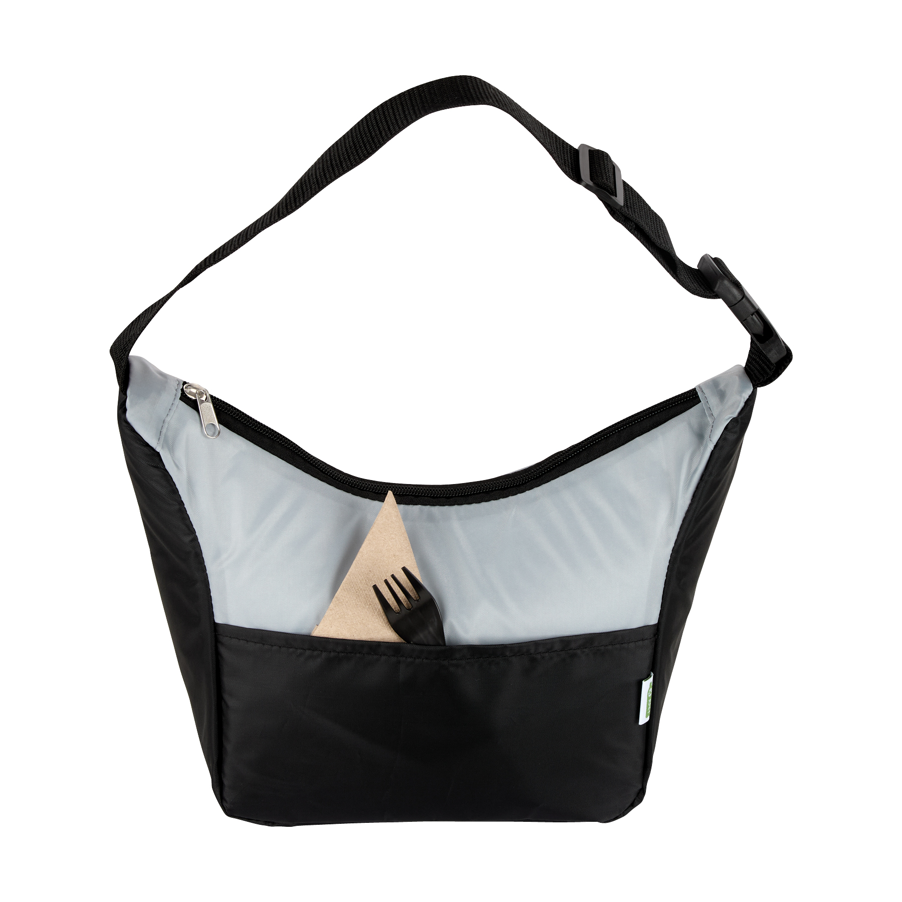 Whether at the office, the local park, or out for a spontaneous drive, the Roni 6-Can RPET Lunch Cooler is made for versatility. Part of the Eco Lifestyle Collection, this sustainable option made from 210D recycled polyester (RPET), has PEVA stitched lining and foam insulation to help keep its contents cool. This lunch cooler also features a front pocket and a 18" x 1 1/2" adjustable buckle carry strap for customizable carrying. Swing the strap over the shoulder, use it as carry handle, or unbuckle and attach it to another bag or hang it on a fence to keep your lunch always within arm’s reach.