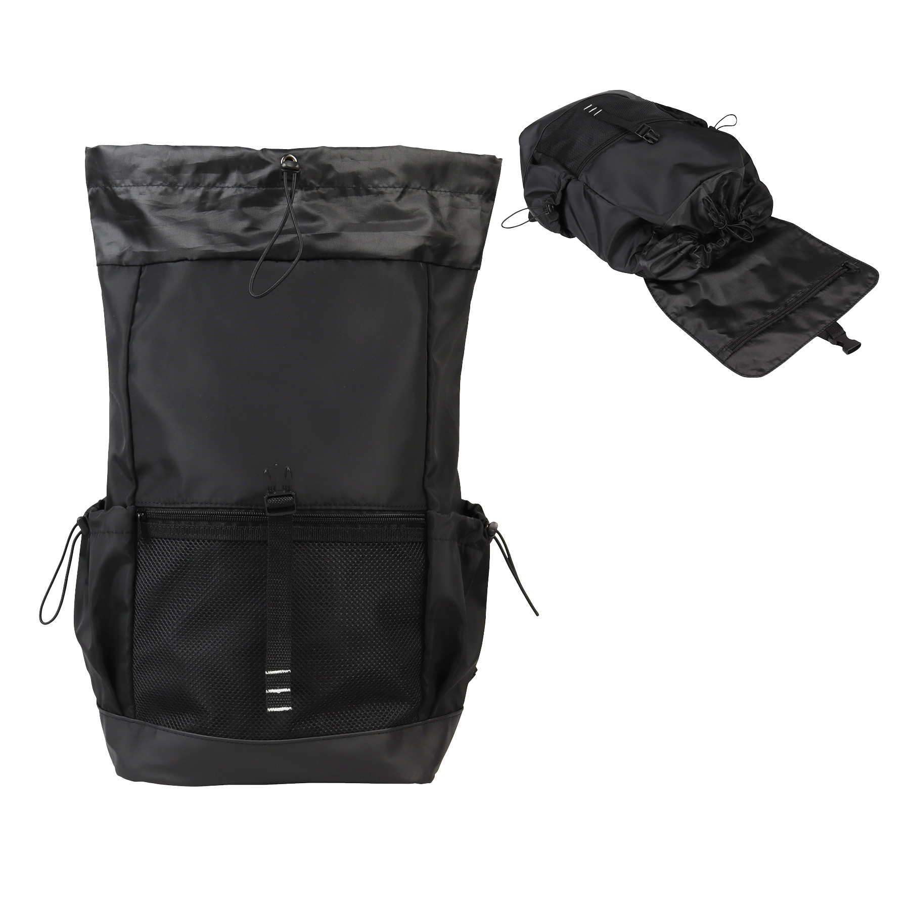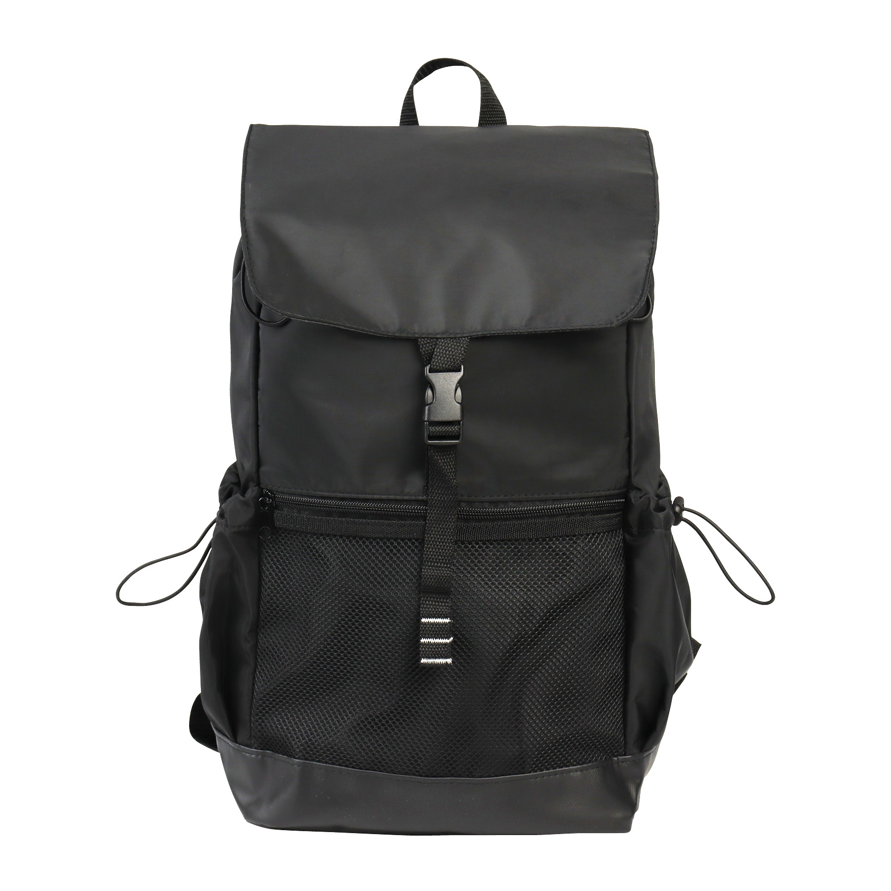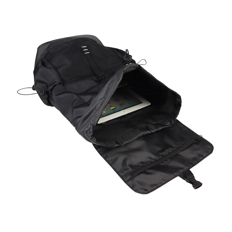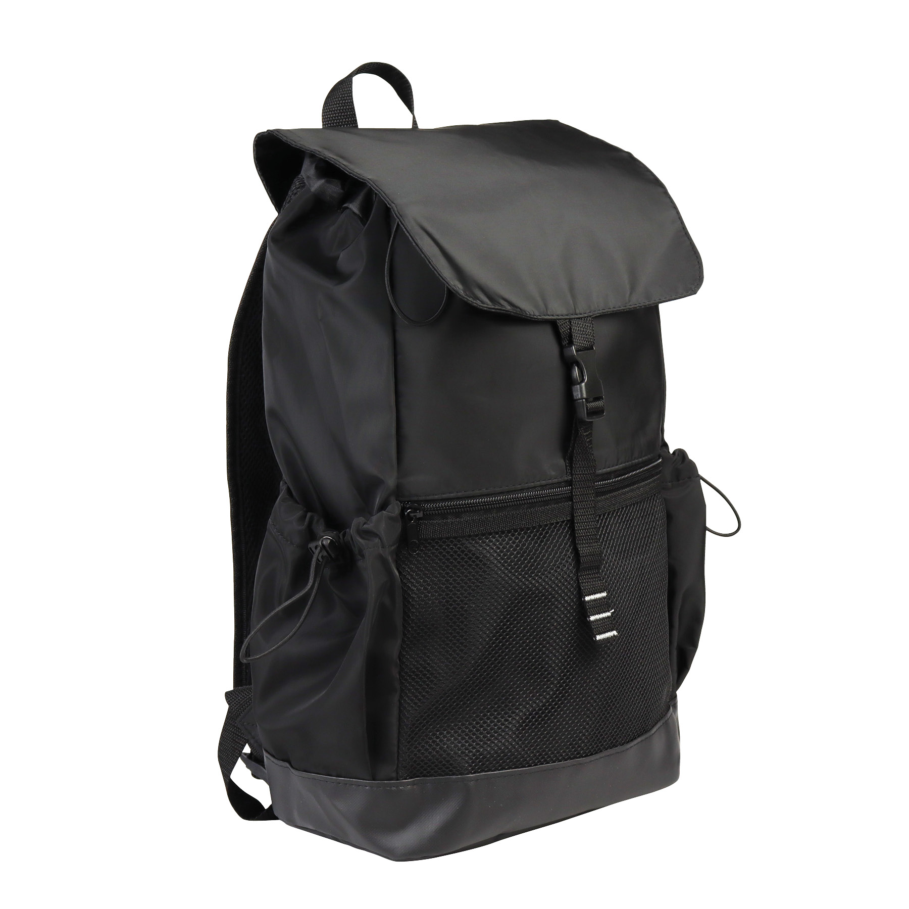 The Tacoma Backpack is crafted with 210D Compound Memory Polyester Fabric, providing a soft touch feel as well durability and extra protection for your gear. Designed for comfort and convenience, it features a padded mesh backside, adjustable padded shoulder straps with air mesh cooling, and a carry handle, ensuring ease of transportation on all your adventures. Its top flap has an underside zippered pocket for small accessories and a buckle strap for a secure closure. The spacious main compartment has a locking drawstring closure and an interior slip pocket that holds most laptops up to 17". The front zippered mesh pocket allows quick access to essential items, while the two side pockets with drawstring closures offer additional storage options for bottles and more. The Tacoma will keep your belongings organized during daily commutes or adventurous travels.