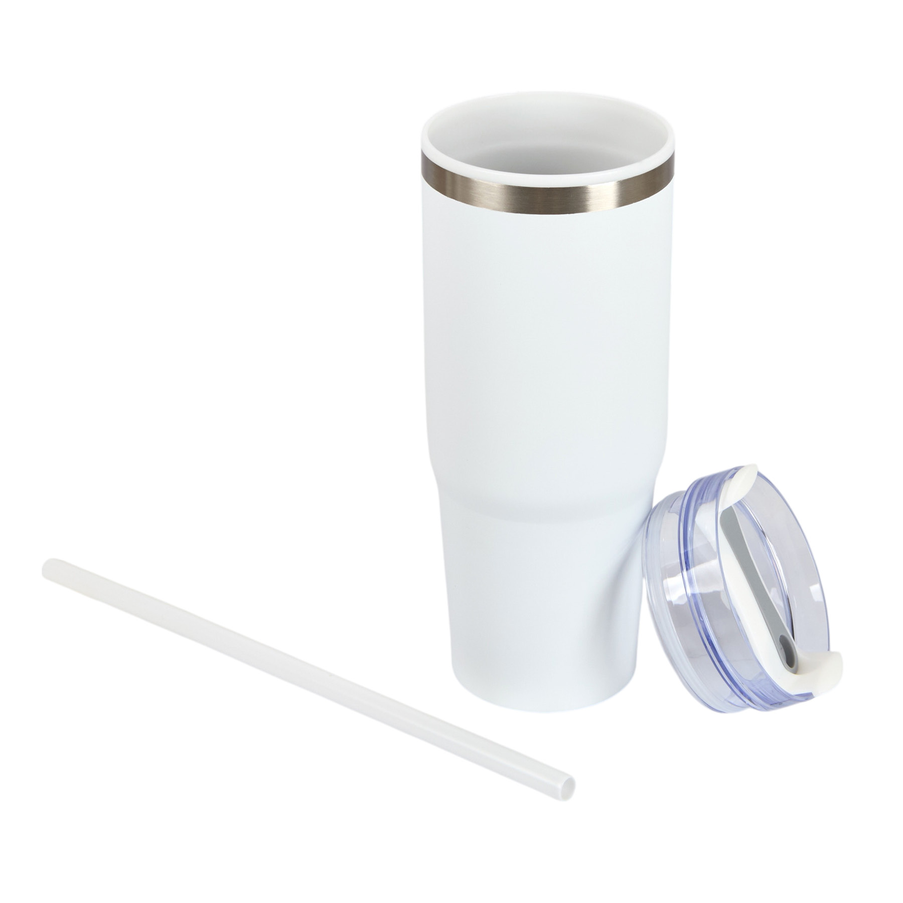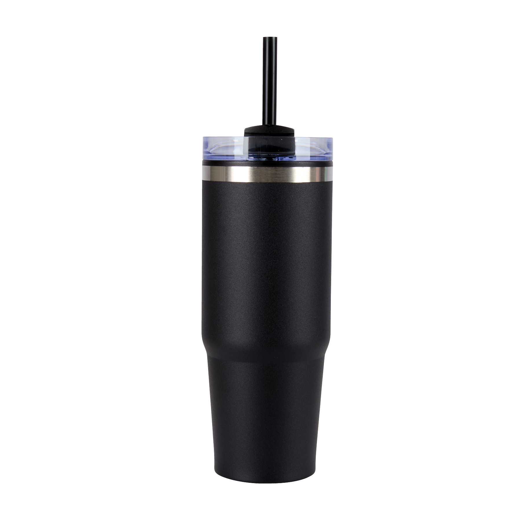 The Yesler 30 oz. Travel Tumbler is designed for both style and functionality, featuring a durable double-wall construction with a stainless steel outer and a polypropylene inner to maintain your beverage’s temperature. Its push-on clear lid with a rotator closure ensures a secure seal, while the included color-matching polypropylene straw adds convenience for on-the-go sipping. The sleek, powder-coated finish enhances durability and grip, and its tapered design fits most car cup holders for effortless travel. This tumbler is a reliable choice for everyday hydration. BPA Free and FDA compliant.