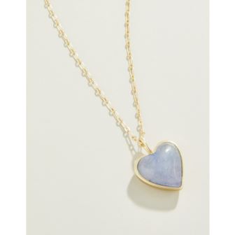 Capture that warm feeling of a full heart in this lovely stone necklace. A thick piece of light blue dyed jade is set in a lustrous 18kt matte gold plated setting on a classic oval chain. Timeless and lovely. Please note: This design features natural stones and each piece is one-of-a-kind. Colors and patterns may vary slightly from the image shown.