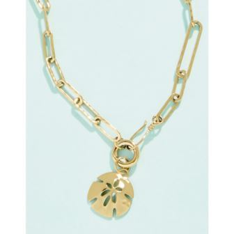 Designed to shine through everyday wear, exercise, showers and a summer at the beach in tarnish free 14kt gold vacuum plating. This textured paperclip chain charm necklace can we worn multiple ways with it's unique hook closure. The built in charm clasps also allows you to take charms on and off. Comes with a summer ready sand dollar charm. Tarnish free & water resistant. Made for everyday wear.