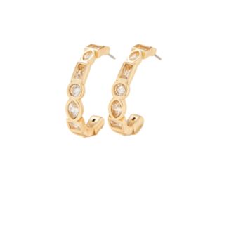 Made for holiday parties, our Shine Bright Hoop Earrings shimmer and shine with cubic zirconia crystals set in 18kt matte gold plated hoops. Pierced.