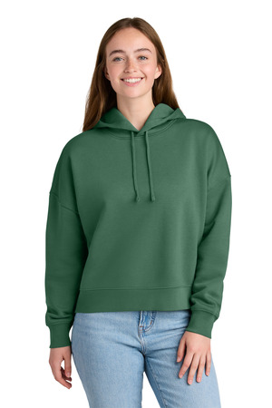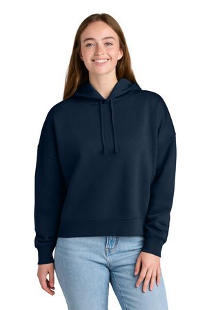A flattering hoodie with contemporary flair. An adjusted length and refined details add a feminine touch to this sustainably-made sweatshirt. 8.9-ounce (300-gram) 80% organic combed ring spun cotton/20% recycled polyester brushed 3-end fleece, cotton face Self-fabric double-layer hood Dyed-to-match flat drawcords Embroidered eyelets Dropped shoulders 1x1 rib knit cuffs and hem Double-needle topstitch on all seams Medium fit 100% recycled polyester tear-away label