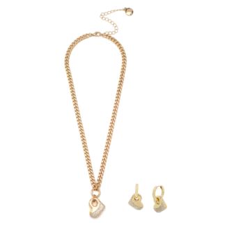 Steve Madden - Steve Madden Heart Charm Necklace & Earring Jewelry Set - Crystal/Gold
