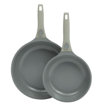 The Sur La Table Craft Studio 4-Piece Frying Pan Set in Juniper brings convenience, color, and clever design to your kitchen. This aluminum cookware set includes four frying pans with a durable ceramic nonstick interior, induction-compatible base, and detachable soft-touch handle for easy storage and cleaning. Ideal for sautéing, searing, or frying with minimal oil, the set is a smart space-saving solution for compact kitchens. Packaged in an open window gift box with remailer. Box Dimensions: 17.25" x 14.50" x 5.00"