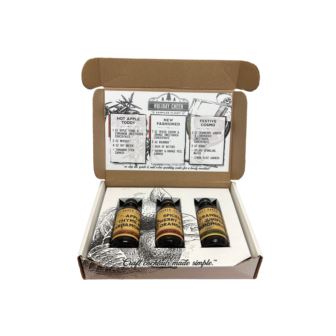 Decked out with a perfect combination of festive and seasonal flavors that make mixing up cozy cocktails & mocktails effortless. This sampler flight includes three craft cocktail concentrates complete with recipes featuring our take on some classic holiday cocktails. Flavors included: Apple Thyme Cardamom, Spiced Cherry Orange, and Cranberry Juniper Lemongrass. All bottles include 2 ounces of Sweethaven Tonics Craft Cocktail Concentrate, which means this sampler flight is enough to make 6 premium craft cocktails/mocktails!