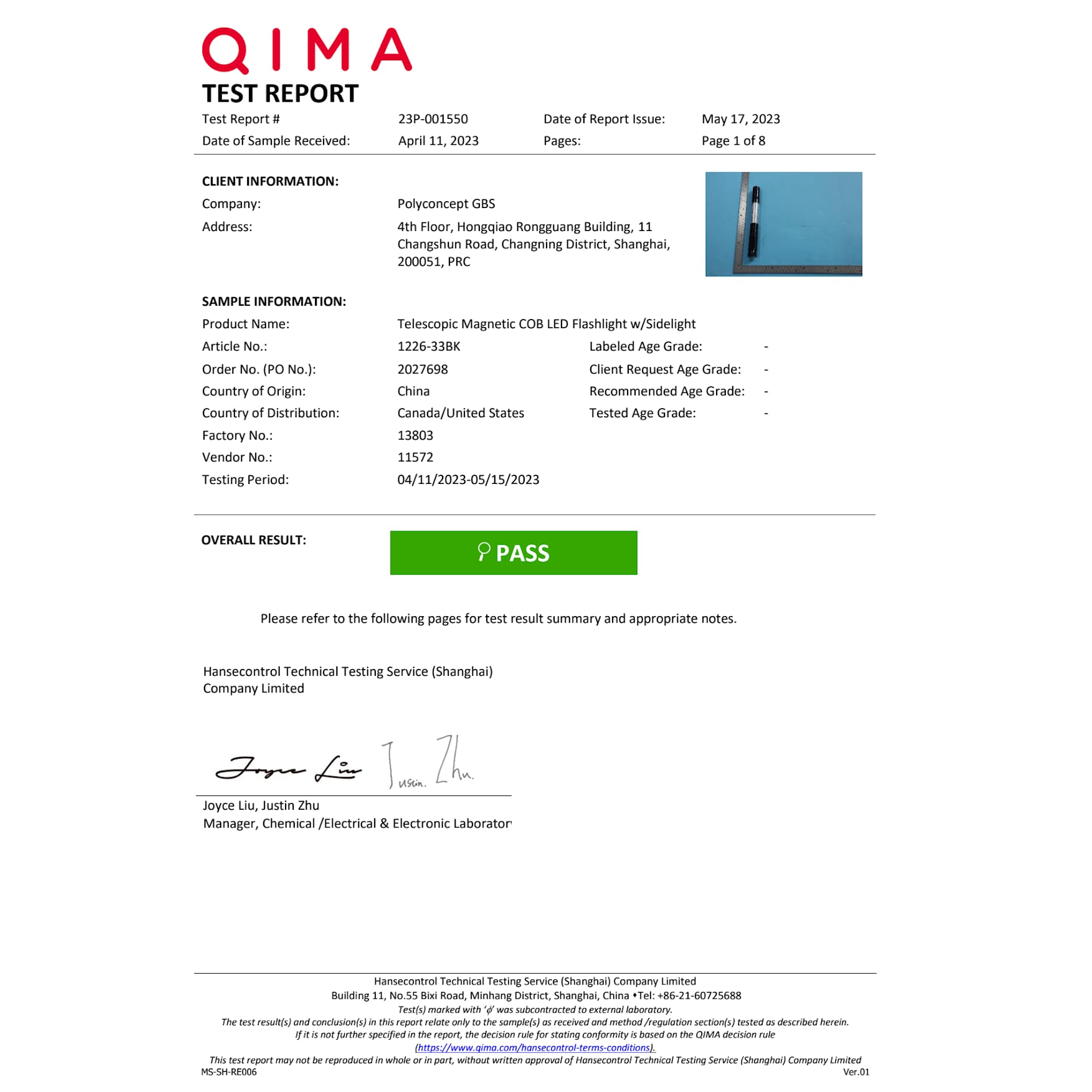Telescopic Magnetic COB LED Flashlight w/Sidelight 1226-33