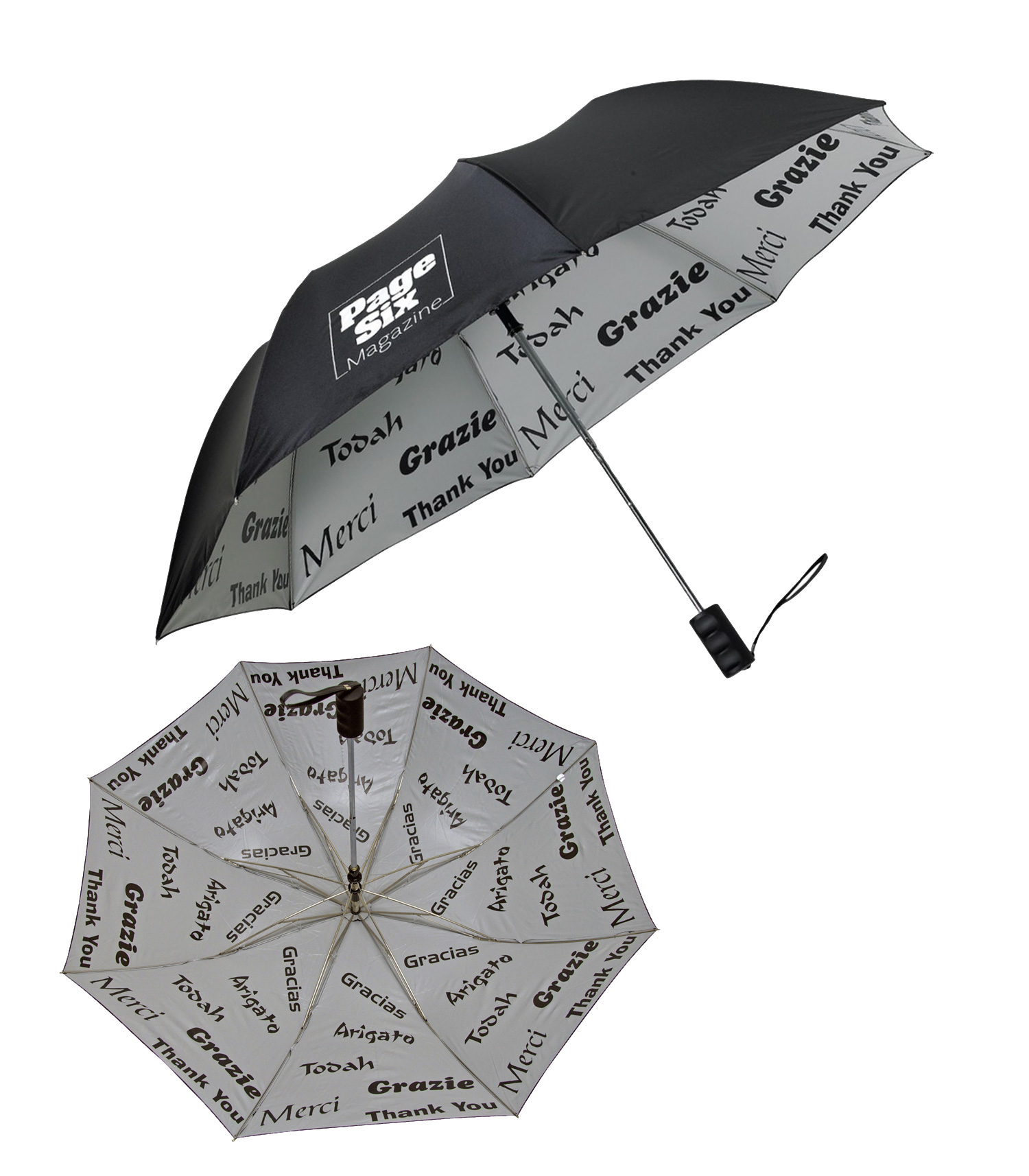 Show your clients how grateful you are of them with the Thank You umbrella! Each umbrella comes in black with a "Thank You" printed in several languages on the underside. Other features include a 48" arc, automatic opening for added convenience and a black rubber spray handle with matching sleeve. A perfect gift to thank donors at fundraising events, showing employees how much you appreciate them or an end of year corporate gift for customers and clients!