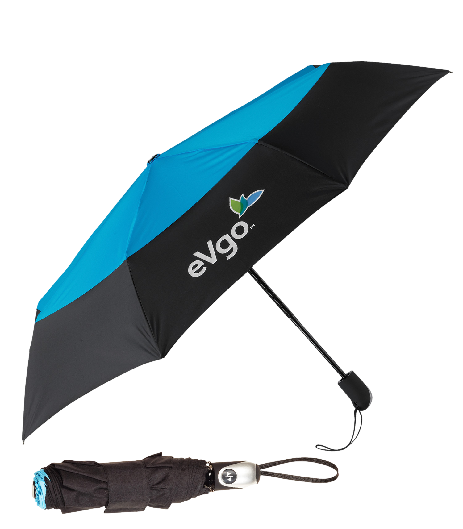 Provide great shelter from a storm or a sweltering heatwave with these umbrellas - and with customization offered, each recipient will have your company to thank for the relief! The Derby mini umbrella measures 11" when closed and features a 42" arc, one touch automatic open/close, nylon with border, black shaft and ribs, black rubber spray handle with silver accents, matching sleeve with bungee closure and wide tie. Choose this versatile gift for your next promotion or special event!
