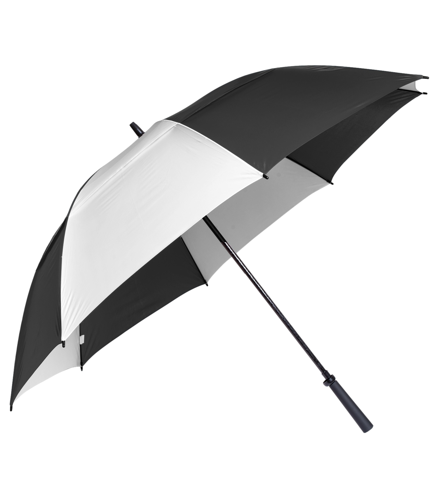 This large 62"-arc golf umbrella will keep you dry and dapper on the course. The Eagle features a vented nylon canopy with a pinch-proof runner to protect your fingers and a fiberglass wind-resistant frame. Includes a convenient matching carry case with shoulder strap.