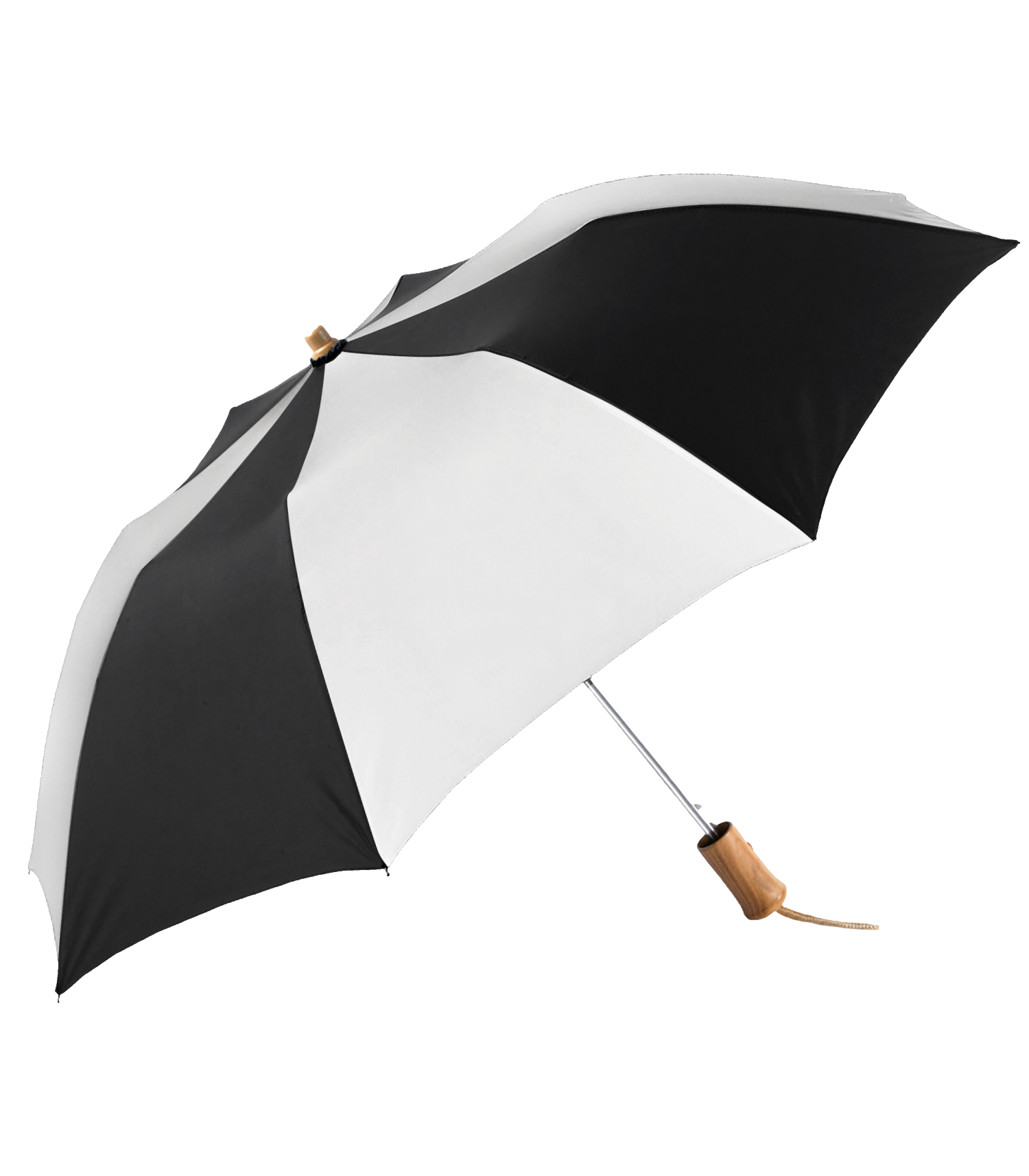 Here is the perfect branded gift for employees, special event giveaways and loyal sponsors! Made of nylon, this folding umbrella is offered in an assortment of colors and comes with a matching nylon sleeve to take it while on the go. Features include 43" arc for maximum protection, an automatic opening for added convenience and a round wood handle that adds a stylish touch for rainy days and traveling.