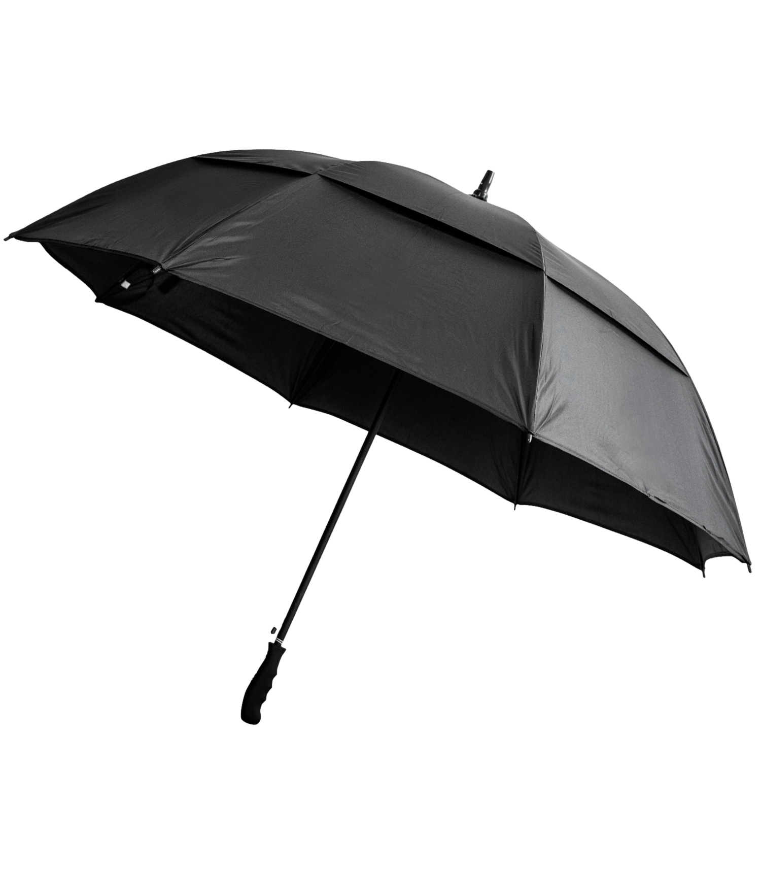 Give your clients the protection they need with this "renowned" umbrella! The Legend umbrella features a 64" arc with fiberglass shaft, Duraflex (TM) fiberglass ribs and an automatic opening with vented technology for convenience. It also has a black rubber spray pistol grip handle and matching sleeve that provides you with a comfortable and stylish product. The soft fabric contains piping and is available in solid or checkerboard design.