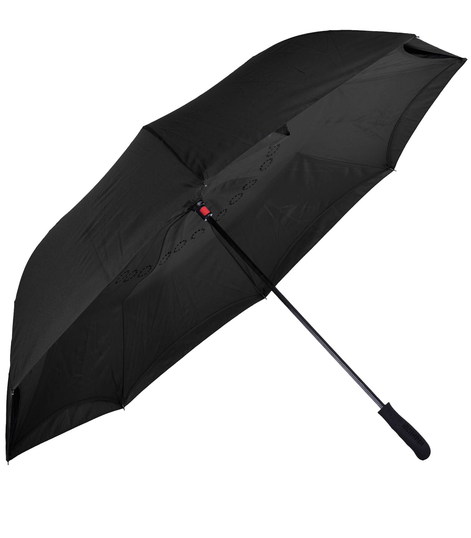 The Rebel XL is an umbrella featuring a revolutionary design that allows the water to push away when closing, making it easy when entering or leaving a car or through a door and keeping you dry in the process. Plus, the inverted closing action keeps the dry side of the umbrella on the outside when brought indoors. Specs include a 56" arc, manual open and close, fiberglass ribs and a rubber spray handle.