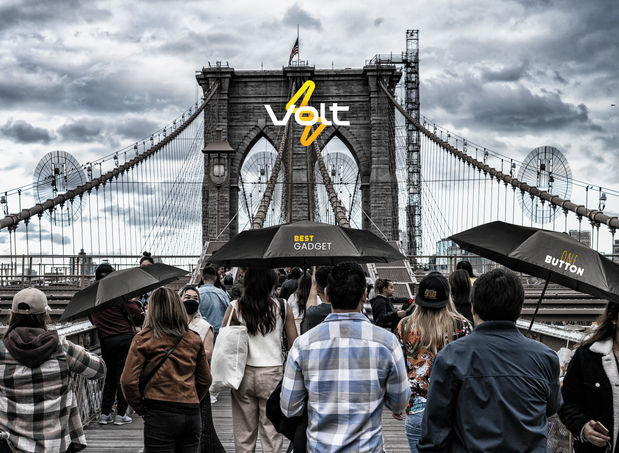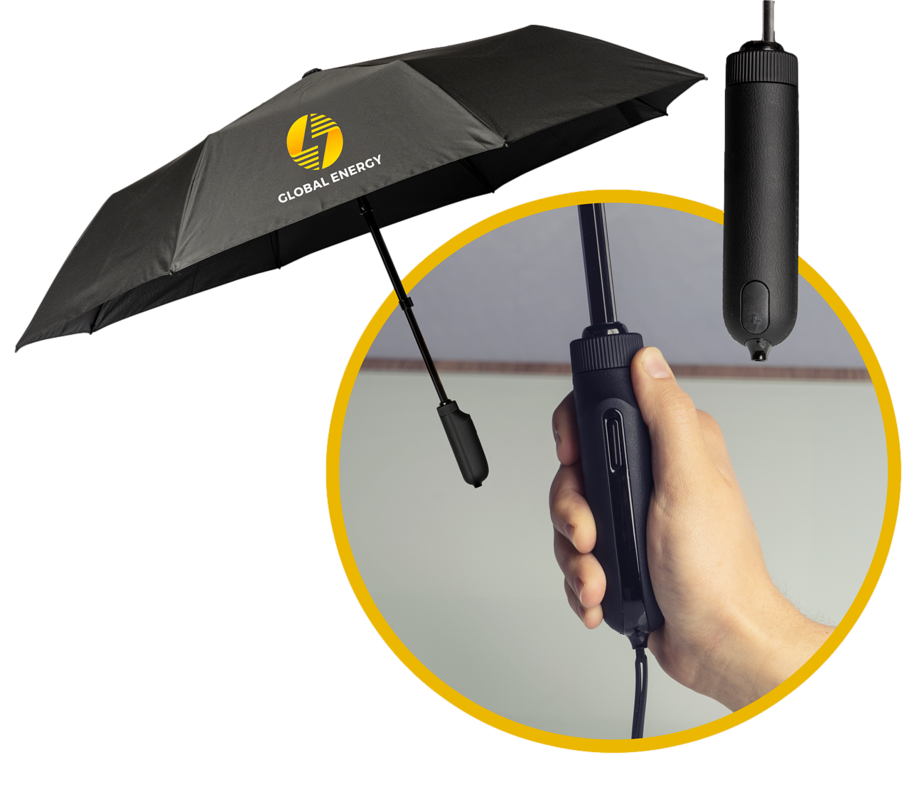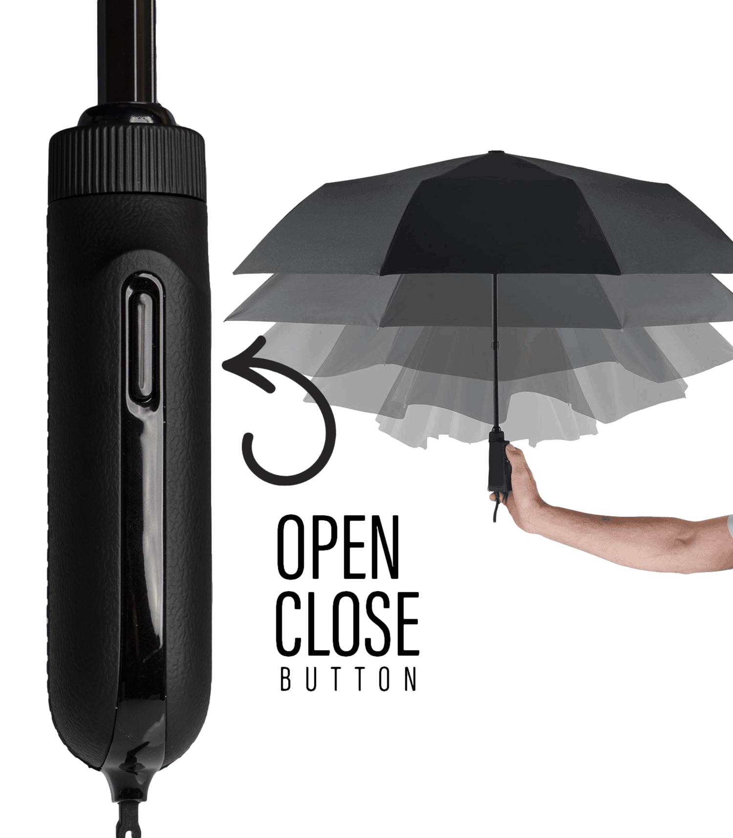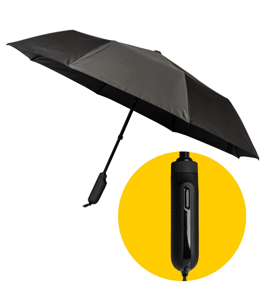 The Volt is the ultimate in umbrella convenience. With its electric drive motor design, this umbrella is fully automatic – just one push of a button to open or close it! Features a 46” arc, steel frame manufacturing, and pongee polyester canopy. Charges via the included USB cable and ships in matte black giftbox.