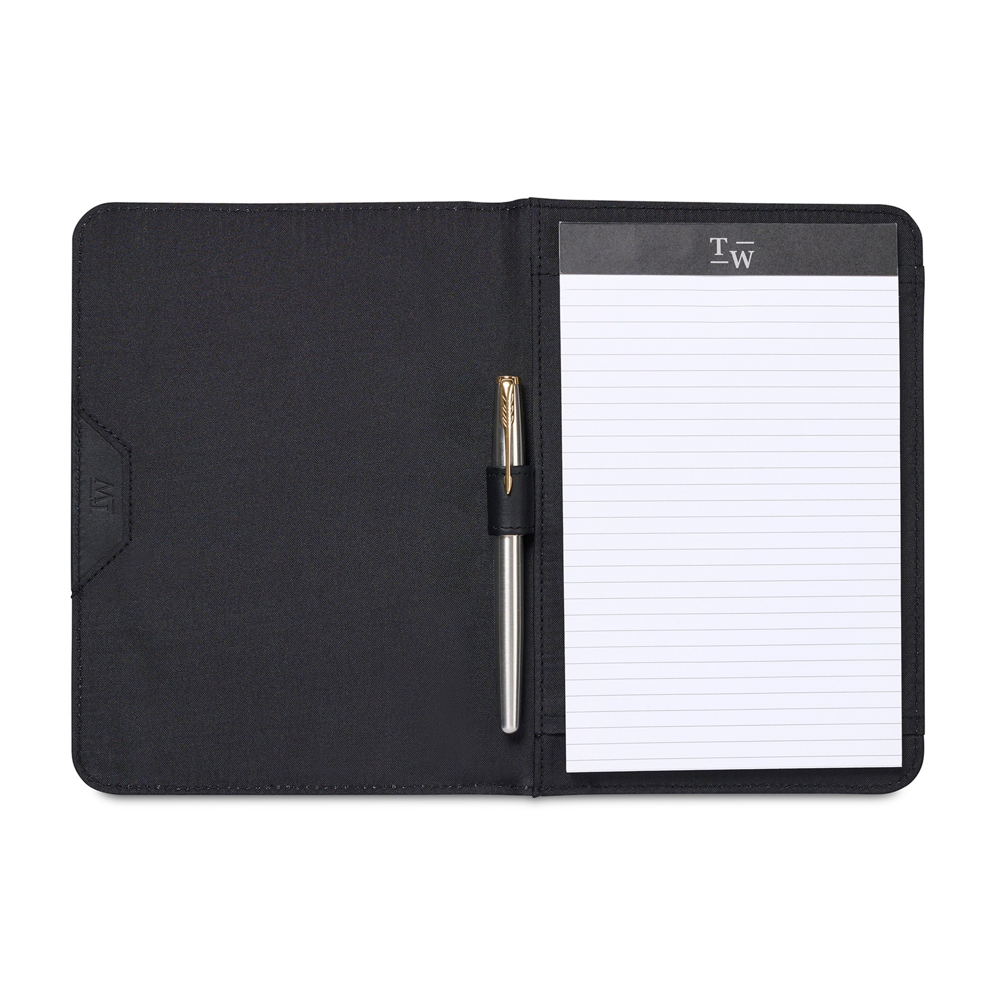 The Travis & Wells® Envoy Junior Writing Pad pairs soft top-grain leather with a sleek, functional design. Featuring a 5" x 8" FSC-certified ruled pad, front document pocket, and leather-covered pen loop, it’s a premium upgrade for professional note-taking—presented in a signature gift box.