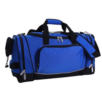 Triple Play Duffel Bag has a U-shape zippered opening into main compartment. Front gusseted zippered pocket, double web carry handles w/Velcro grip closure. Zippered wet pocket and zippered pockets on each end of duffel. Dimensions: 21" x 11" x 9"