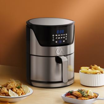 Uber Appliance offers one of the best air fryers on the market today, our Uber Air Fryer XL is perfect for any family with its roomy 5 quart basket you can air fry a whole chicken. The dishwasher safe basket and grease separator with non stick coating make cleaning a breeze just wipe it down with a damp soapy microfiber towel and toss it in the dish washer.The Uber Air Fryer XL features an easy to use touch display for temperature and time setting with temperatures ranging from 150F to 400F, the digital display also has several pre-set cooking temperature and time to perfectly cook chicken, steak, fries, wings and so much more with a single press of a button. Every Uber Air Fryer XL Comes with a free recipe book so that you can explore tasty meals as soon as you get it with plenty more recipe's on our site.