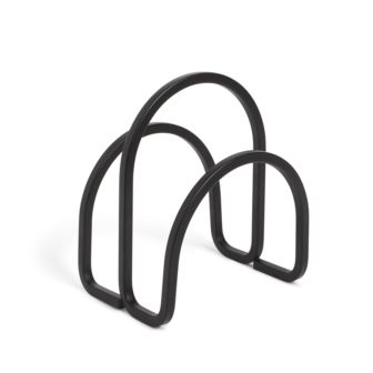 A contemporary take on a classic aesthetic, this Napkin Holder has the look of cast iron but its continuous square wire creates a graphic line that is all modern. Squire Napkin Holder makes keeping napkins on hand, neat and organized easy to do. Its divider supports your napkins, makes them easy to organize and doubles as a handle, making it easy to move around. This modern piece looks great as an accessory in your kitchen or at a cocktail party. Squire's compact design measures 4.88 x 3.88 x 5.8" (12 x 10 x 15 cm) so it won't take up too much space on your table or countertop but will still make an impact. Squire is made of bent metal and comes in Black. This napkin holder is made with an eco-friendlier finish. It produces 85% less water and solid waste than traditional electroplating finishes.