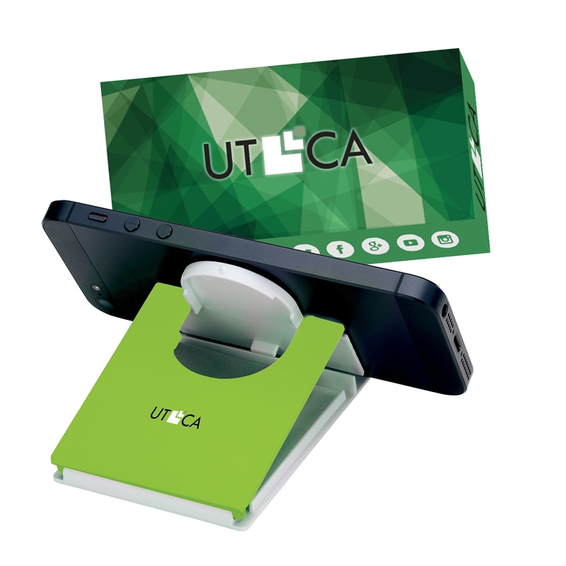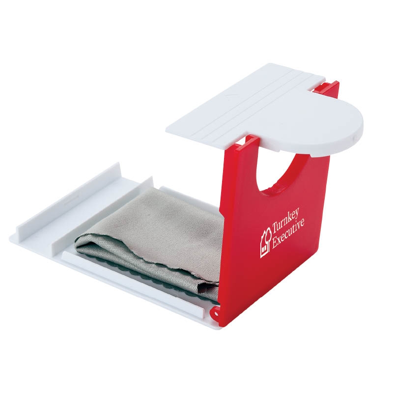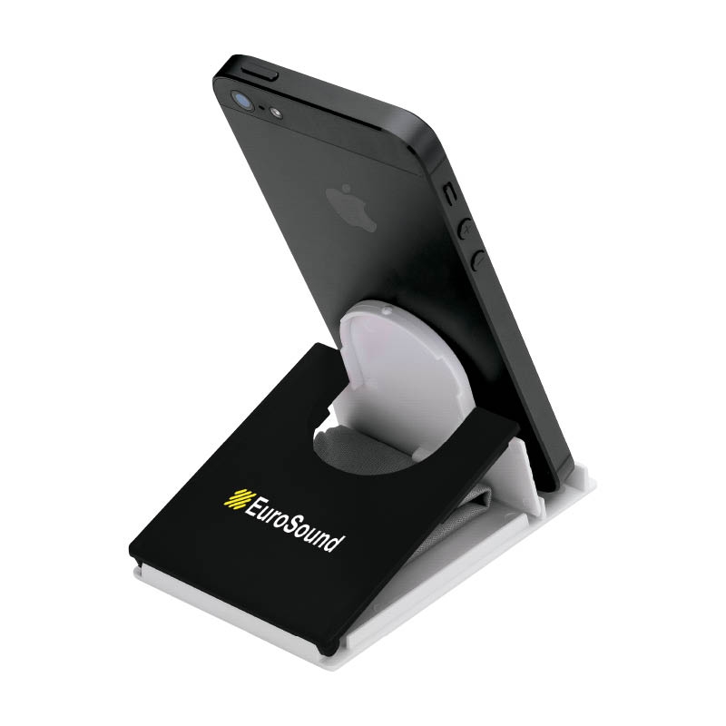 Mobile phone / tablet stand with microfiber screen cleaning cloth.
