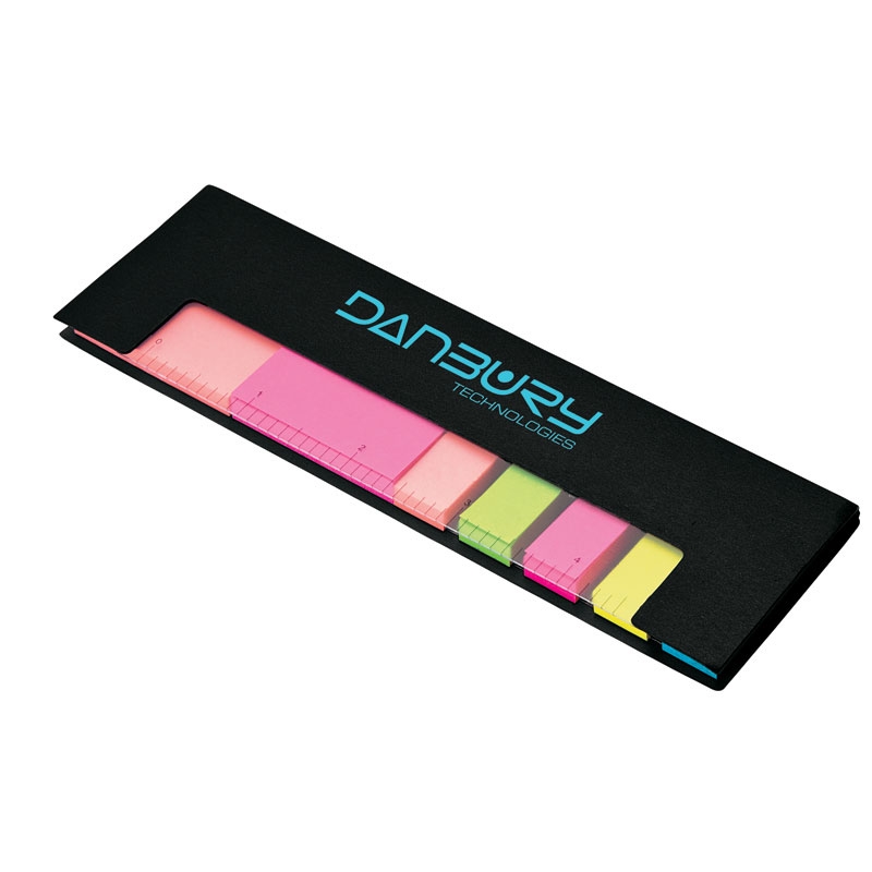 Mini desk set with 2 color memos, 5 color flags and 4 1/2" PP ruler.