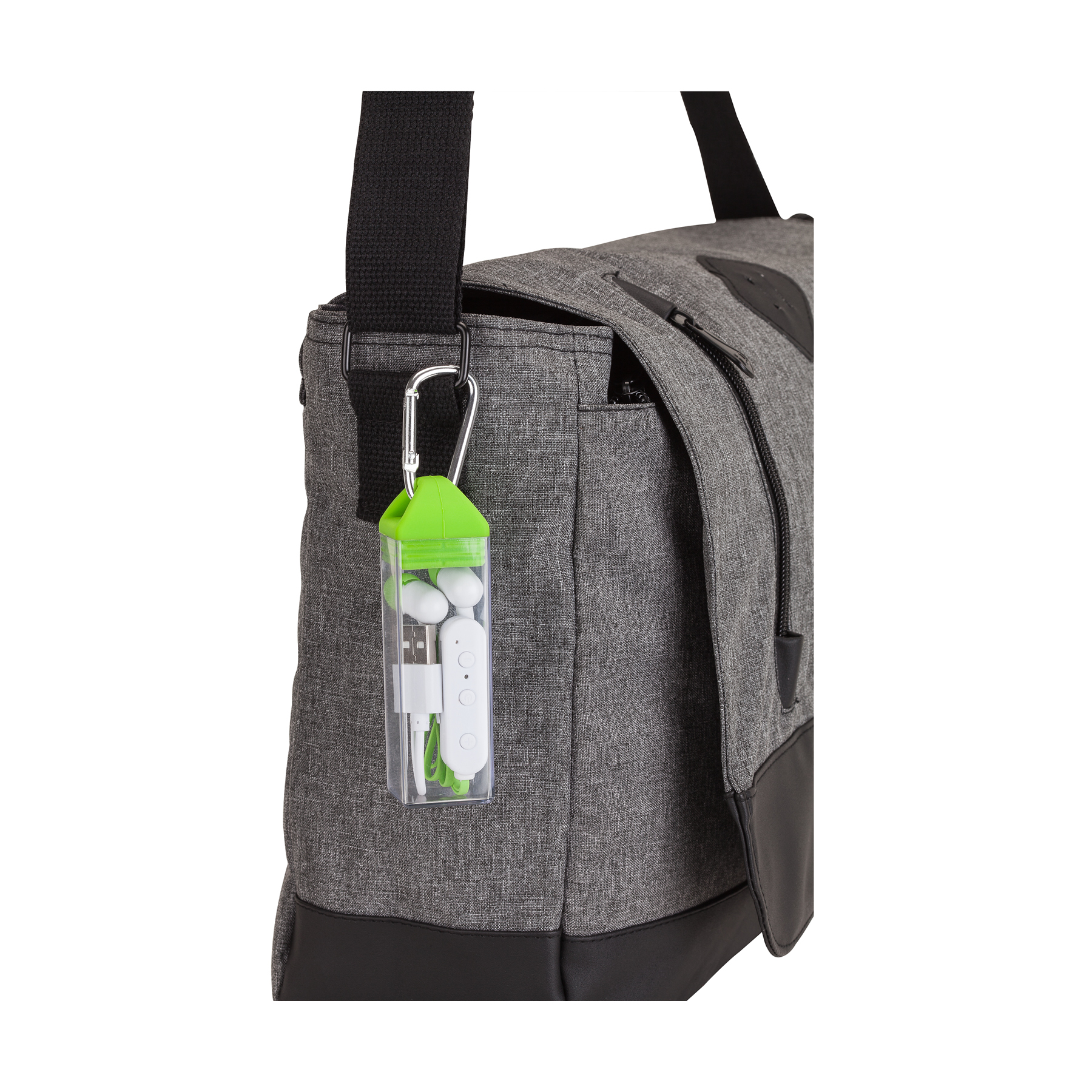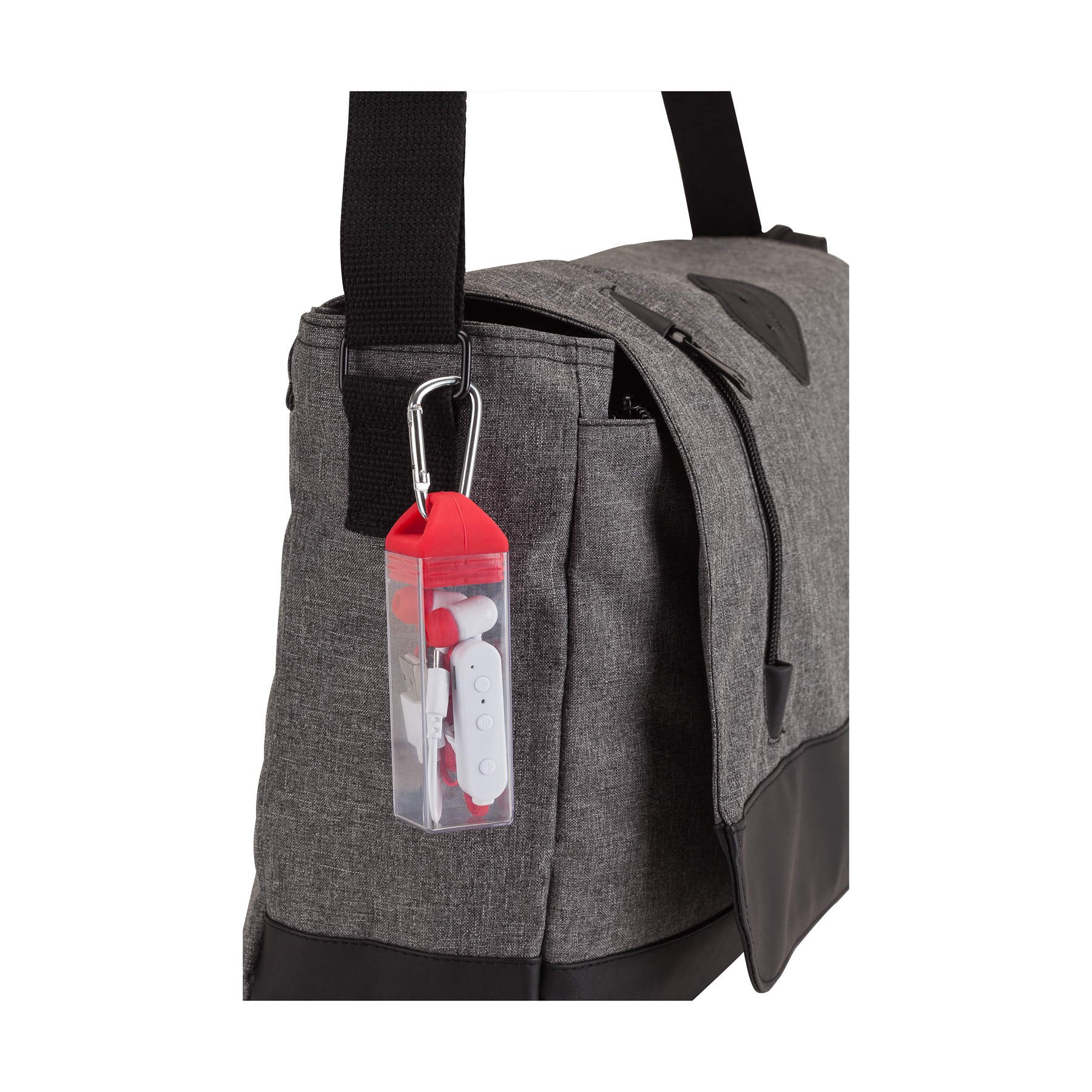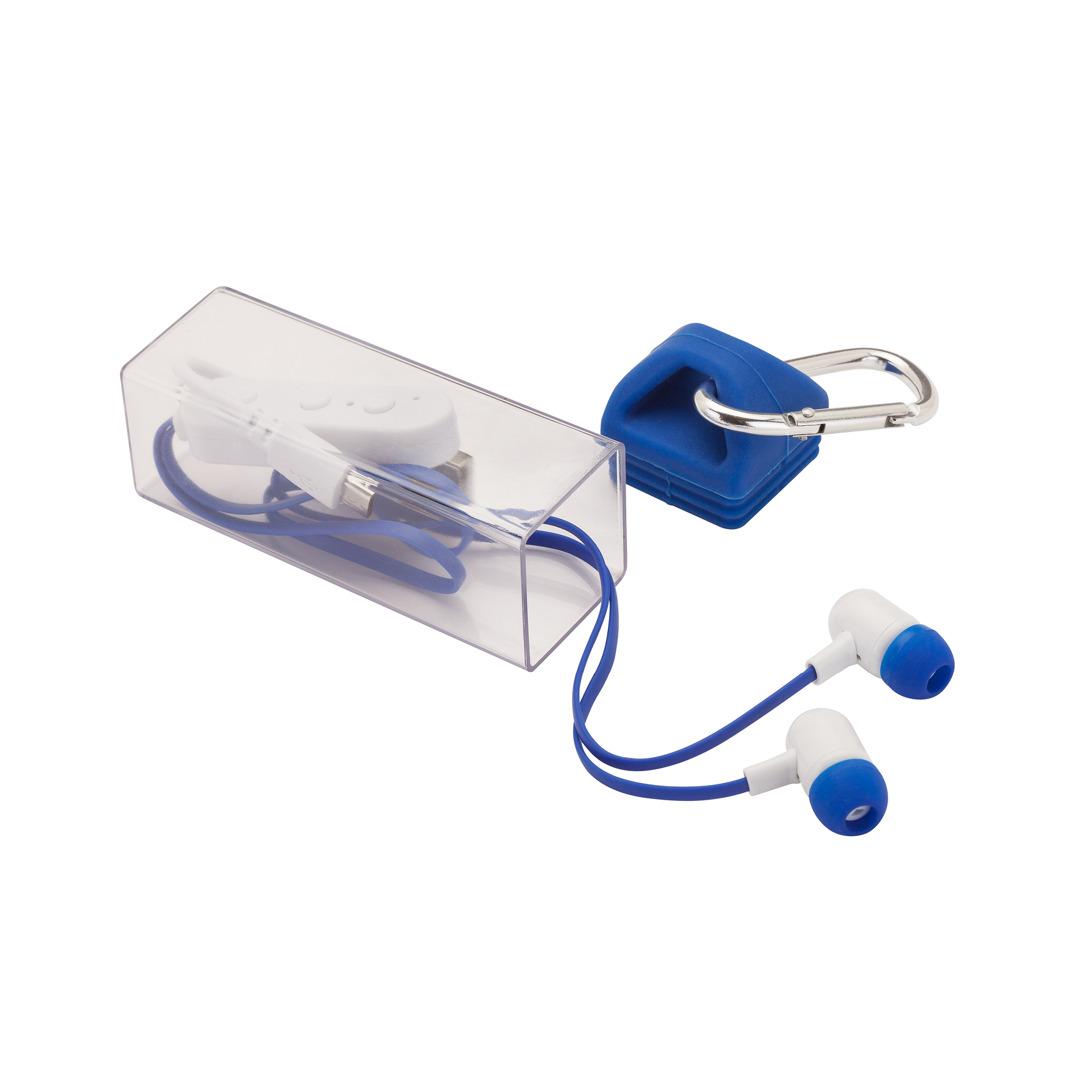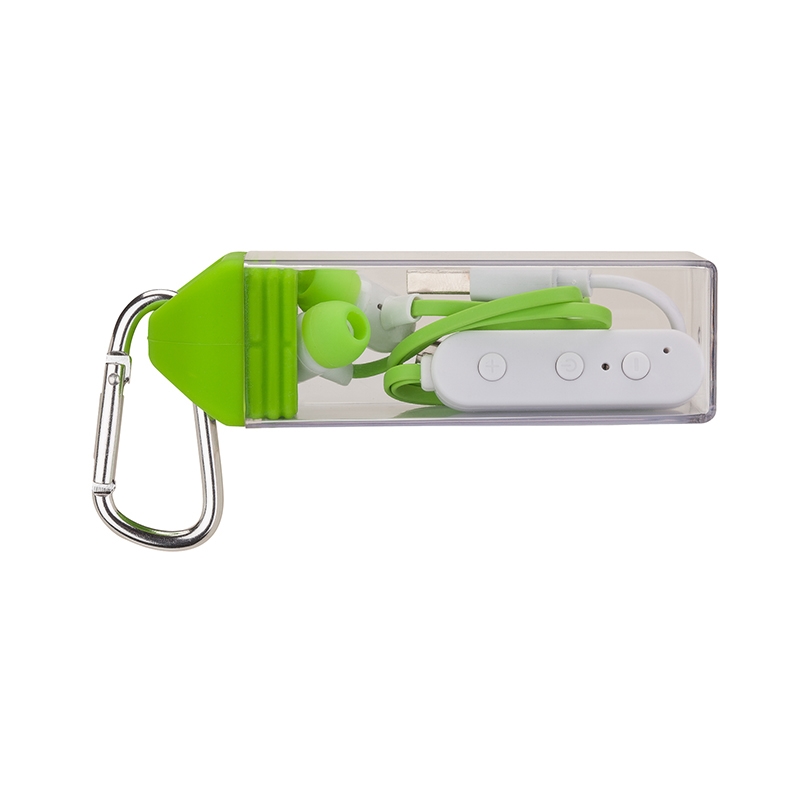The Hail Storm Bluetooth earbuds feature flat tangle-free wires and allow you to answer calls and enjoy your music wirelessly up to 30 feet away and are compatible with most Bluetooth-enabled smartphones, tablets, laptops and desktop computers. These earbuds allow you to pause and skip tracks, raise and lower volume wirelessly and come in a clear case with a carabiner for safe transport. Battery: lithium 50 mAh. Music playing time: 2 1/2 hours. Talk time: 1 1/2 hours. Charging time: 1 1/2 hours. Standby time: 120 hours. Bluetooth version 4.2. Bluetooth profiles: HSP, HFP, ADP AND AVRCP. BQB-QDL, CE, FCC, MSDS, UN38.3 and RoHs.