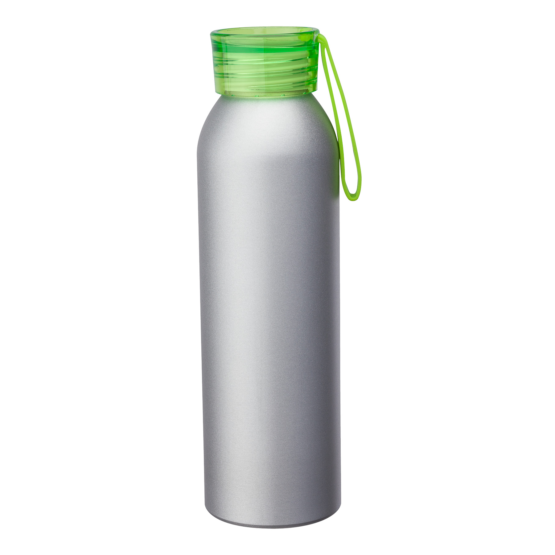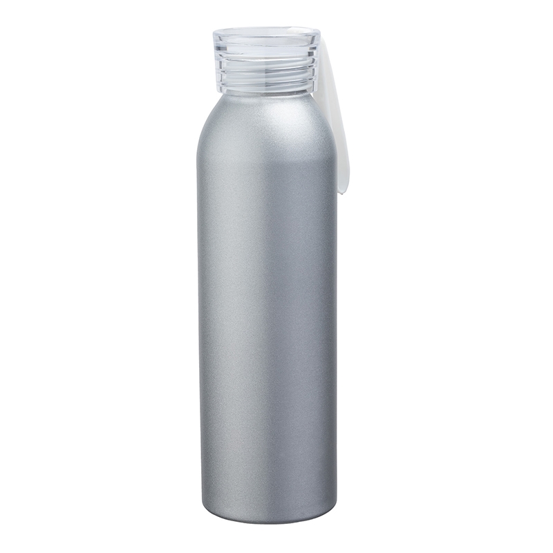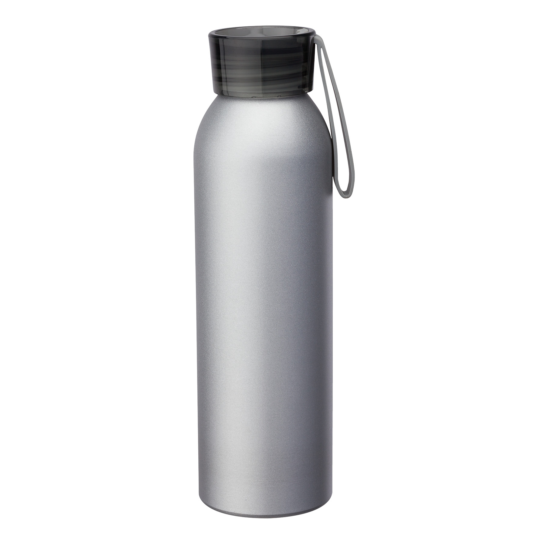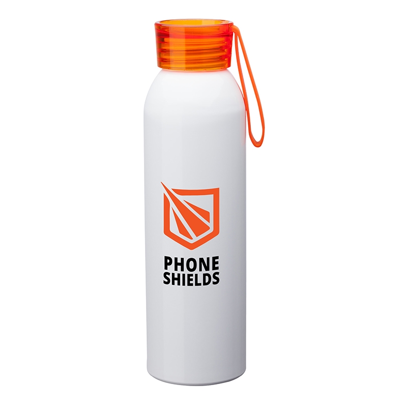 Our Metis 22 oz. aluminum bottle is BPA free, FDA compliant and comes with your choice of black, silver, or white body and various colored translucent screw top lids. Each top has a silicone ring for a tight seal and a matching colored silicone strap for easy carrying.