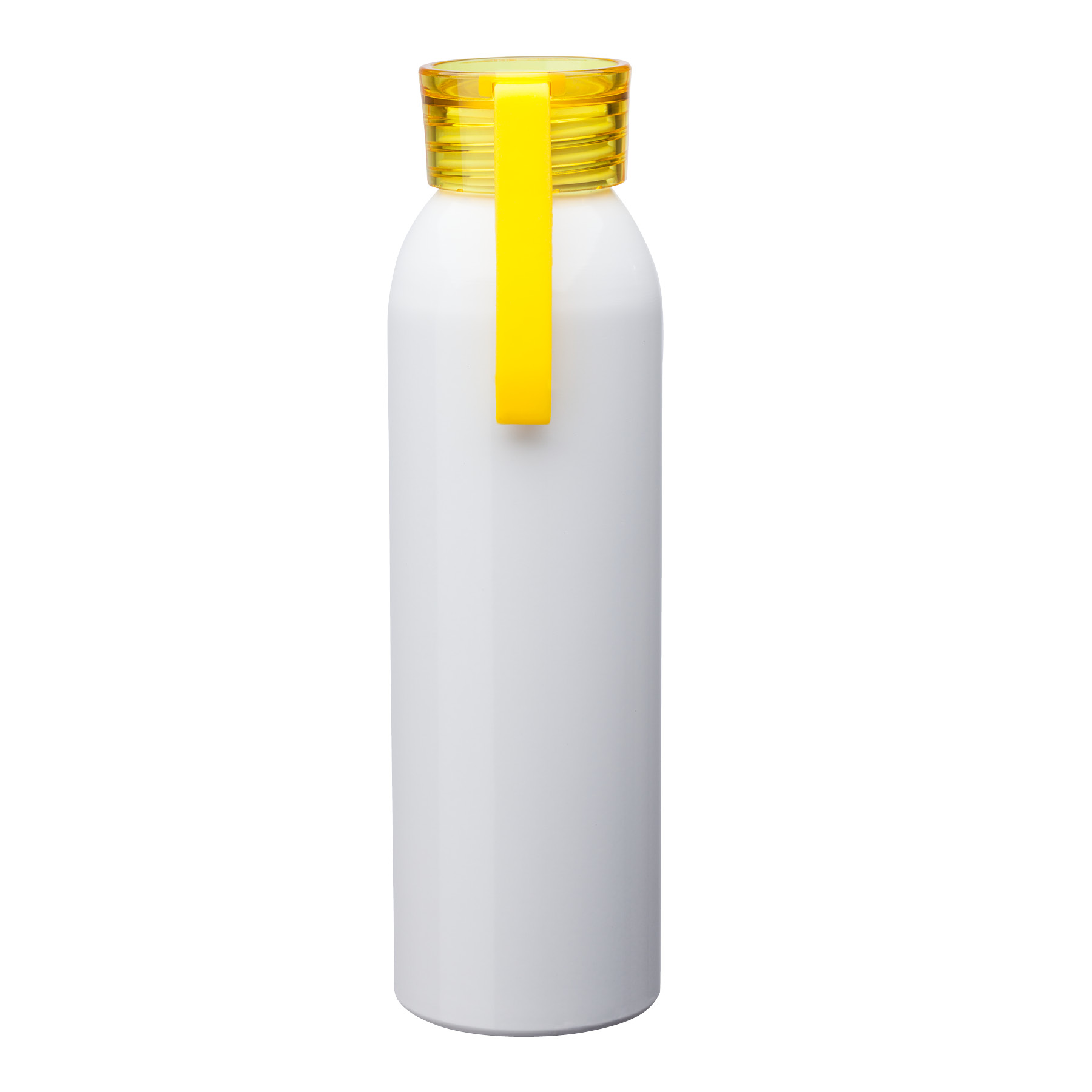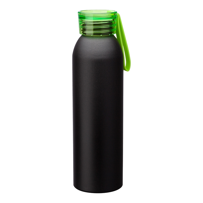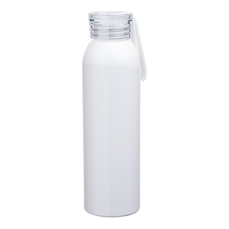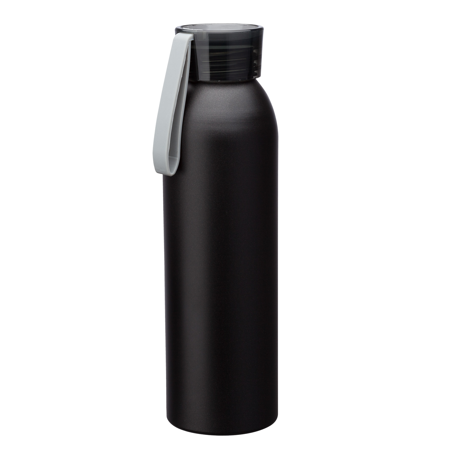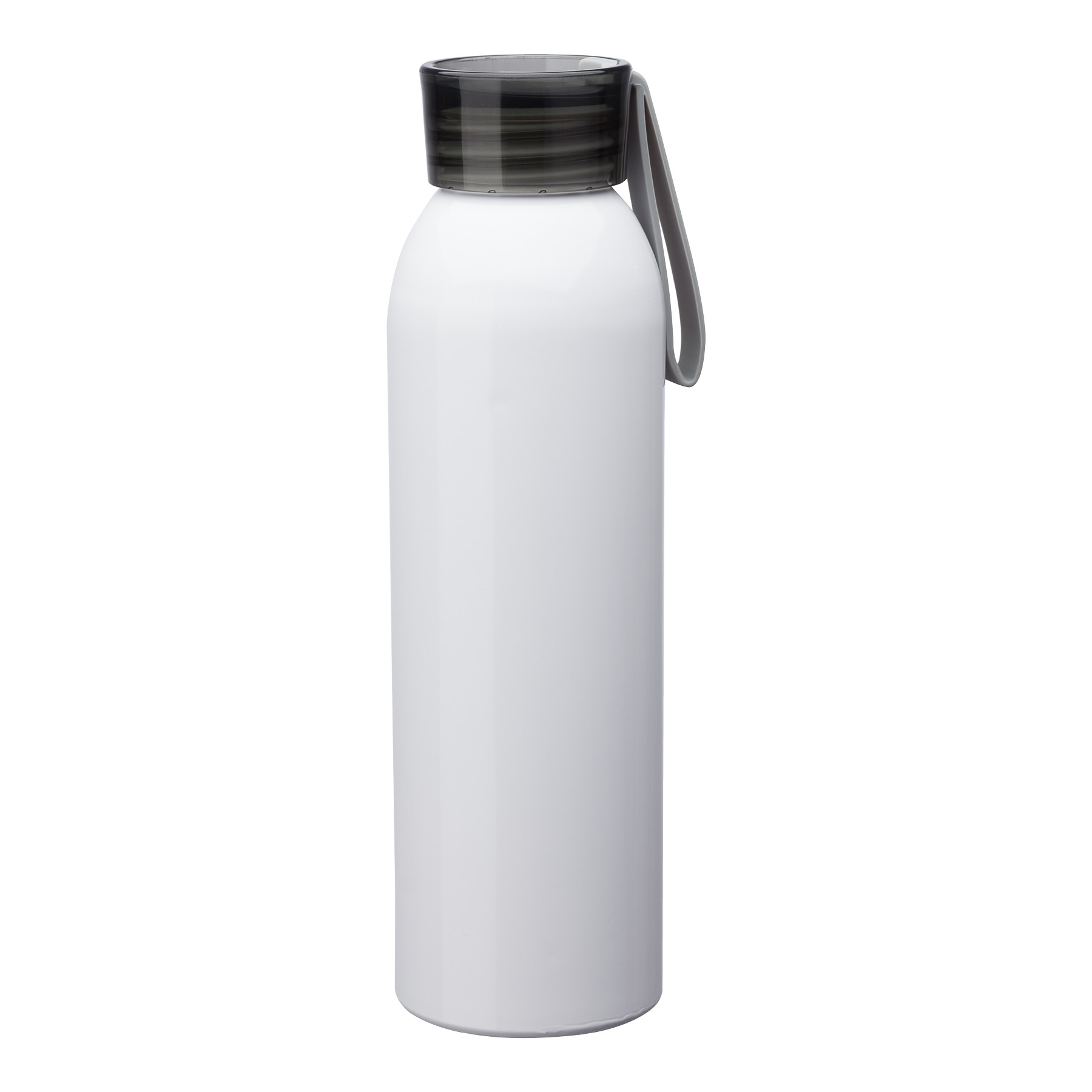 Our Metis 22 oz. aluminum bottle is BPA free, FDA compliant and comes with your choice of black, silver, or white body and various colored translucent screw top lids. Each top has a silicone ring for a tight seal and a matching colored silicone strap for easy carrying.