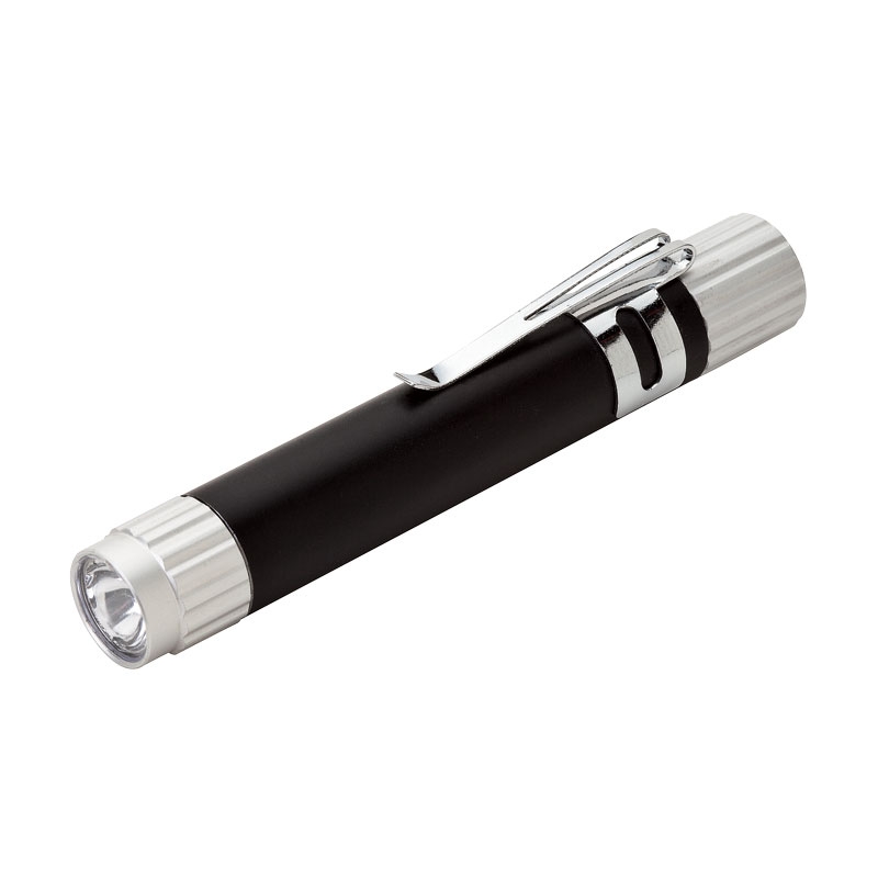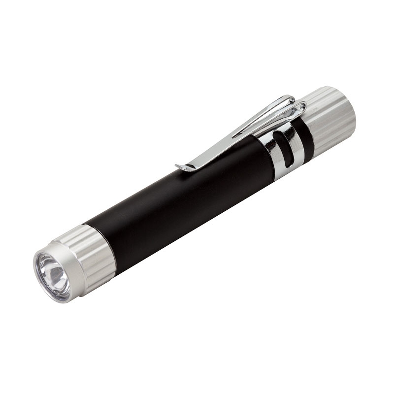 Aluminum LED flashlight with pocket clip.