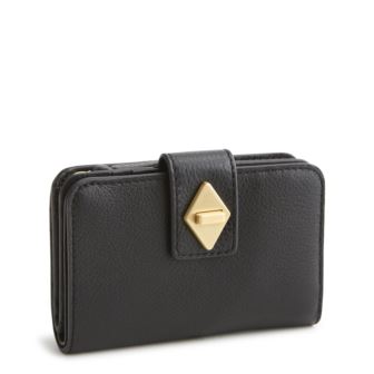 Made of leather sourced from premium American hides. Meticulously crafted, this lightweight, irresistibly soft leather provides a relaxed, modern silhouette and unquestionable level of sophistication. This wallet keeps everything beautifully in place. Exterior features a slip pocket. Interior features 8 card slip pockets, an ID window and 3 slip pockets. Main compartment has a divider and 2 slip pockets. Turnlock and zip closures. 5.25"w x 3.5"h.