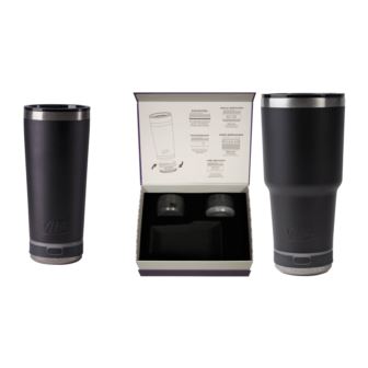 The perfect gift box set that includes all of our base attachments in one box. Gift box bundle includes a Vibe 28 oz. tumbler with the Solo Speaker, Power bank, Light, Coaster Base, and comes with a Soft Touch Finish Gift Box with custom foam insert. This bundle also includes the Vibe 18oz Tumbler in Black.