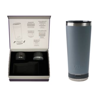 The perfect gift box set that includes all of our base attachments in one box. Gift box bundle includes a Vibe 18 oz. tumbler with the Solo Speaker, Power bank, Light, Coaster Base, and comes with a Soft Touch Finish Gift Box with custom foam insert.