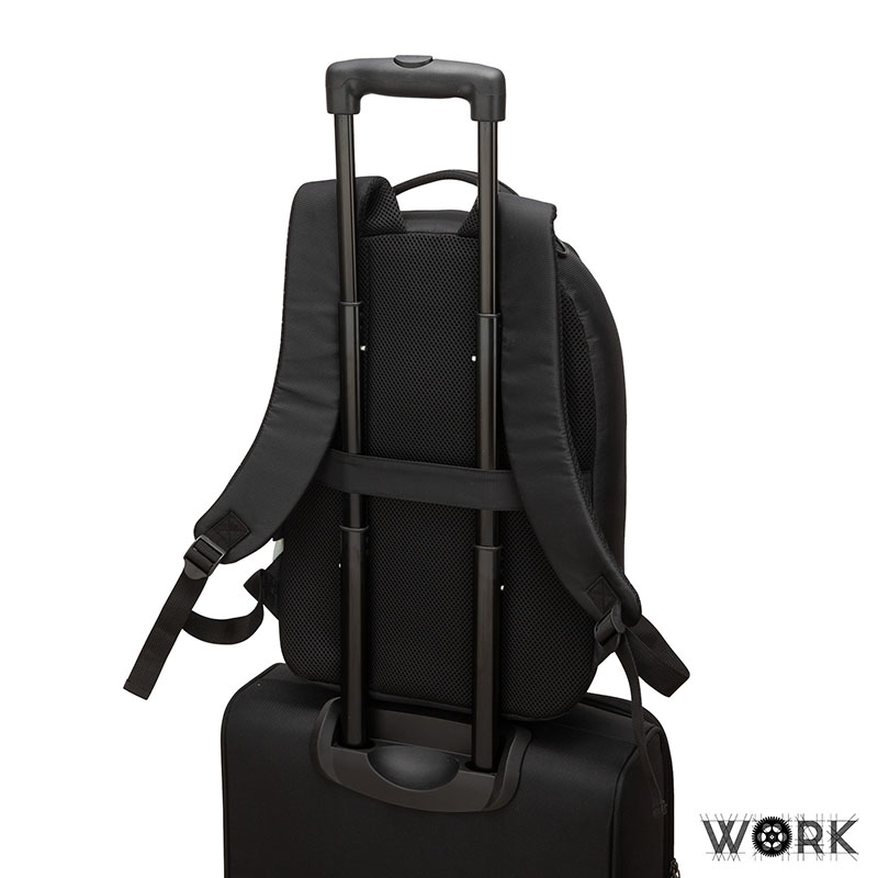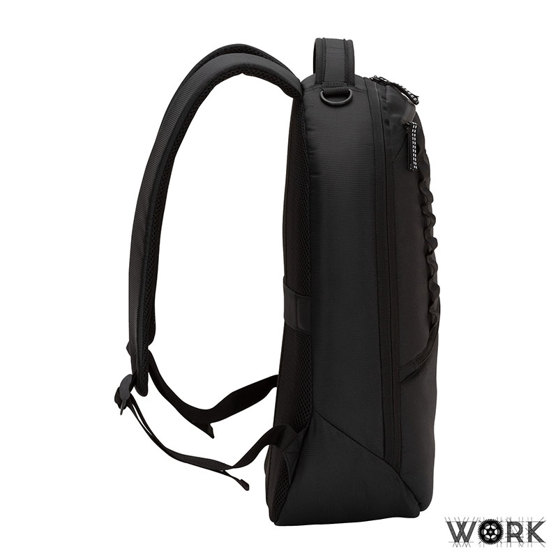 The Work® Birmingham Backpack is made with 840 denier recycled polyethylene terephthalate (RPET) that comes from previously used and discarded plastic bottles and is part of the eco-lifestlye collection. It is fully padded and lined with 210D polyester and features a main compartment with padded laptop pocket with safety strap, a zippered pocket and 2 mesh pockets. There is also a top-load zippered accessory pocket, a front zippered pocket, daisy chain and a padded carry handle with two D-rings. Carry it with the fully padded adjustable backpack straps or attach it to your luggage with the backside trolley strap. A portion of all proceeds is donated to Shelter to Soldier™, a non-profit organization that rescues dogs to train as service animals for veterans in need.