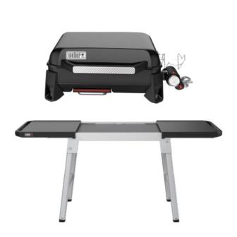 Explore griddling anywheresmall patios, tailgates, and beyondwith the 17'' rust-resistant Weber Slate Tabletop Griddle. It's ready to cook on right out of the box and stays ready, not rusty, use after use. Weber Slate cooktops are made differently than other griddles. The carbon-steel gets transformed under extreme heat and pressure that case hardens and bonds the surface, reducing the ability for moisture to collect and rust to form. It is then pre-seasoned with food-safe oils that condition the metal for an extra boost of rust resistance and a natural, easy-release cooking surface right out of the box. No use of coatings means you can use metal tools to flip, press, and scrape without worry. It reaches over 500deg.F and heats evenly for consistently cooked food across the cooktop. Plus, adjustable feet let you level the griddle on uneven surfaces. Kit includes the Weber Collapsible Griddle Grill Cart.