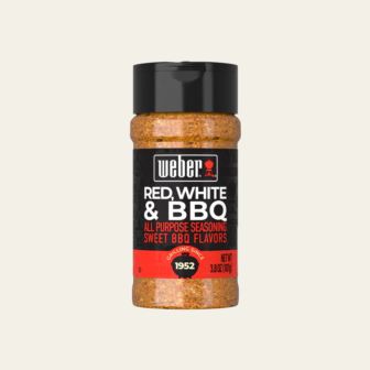 The perfect seasoning for summer holiday grilling occasions! Weber's Red, White, and BBQ grilling seasoning goes great on any dish including kabobs, chicken wings, and burgers. This sweet and tangy blend will for sure be a hit at all your backyard BBQs!