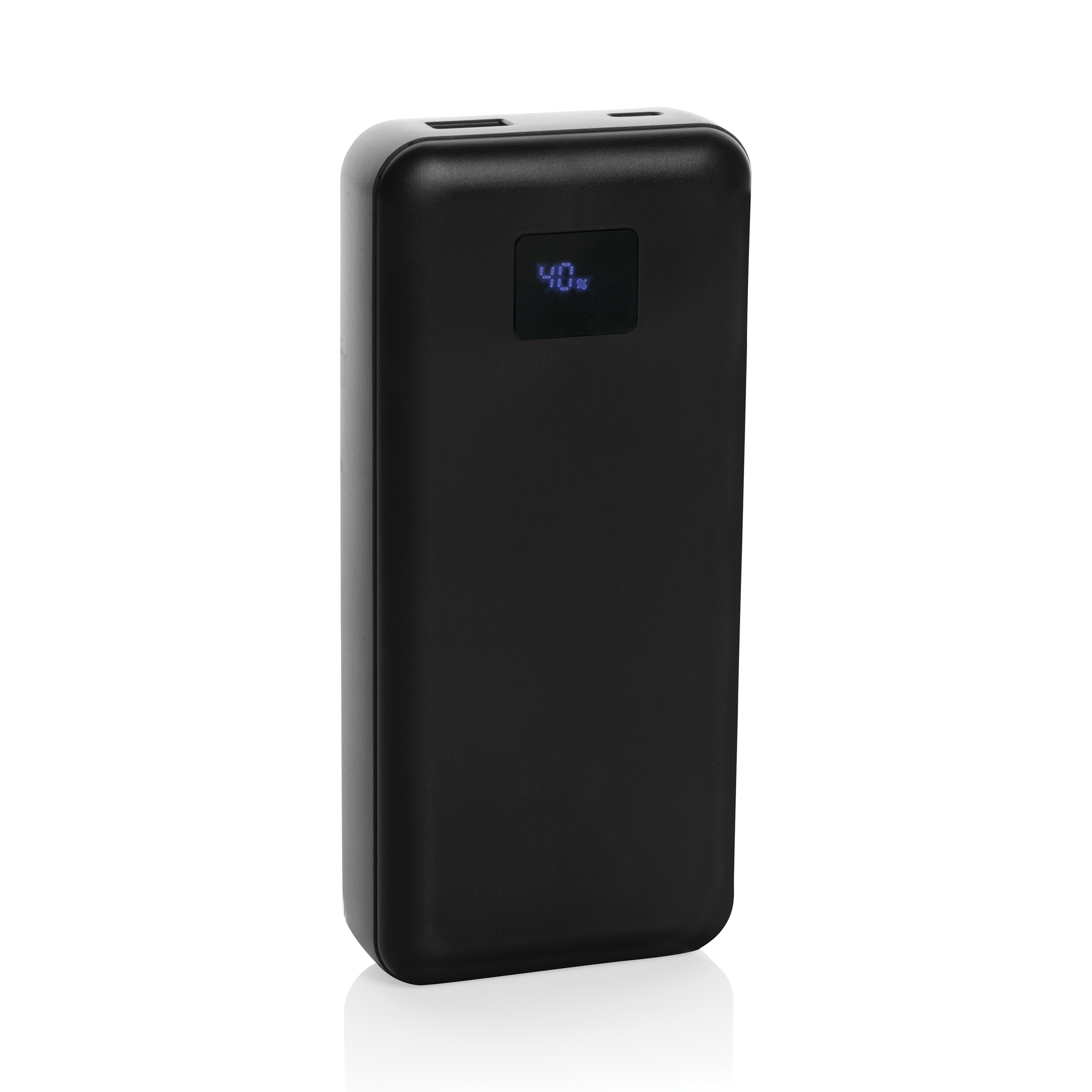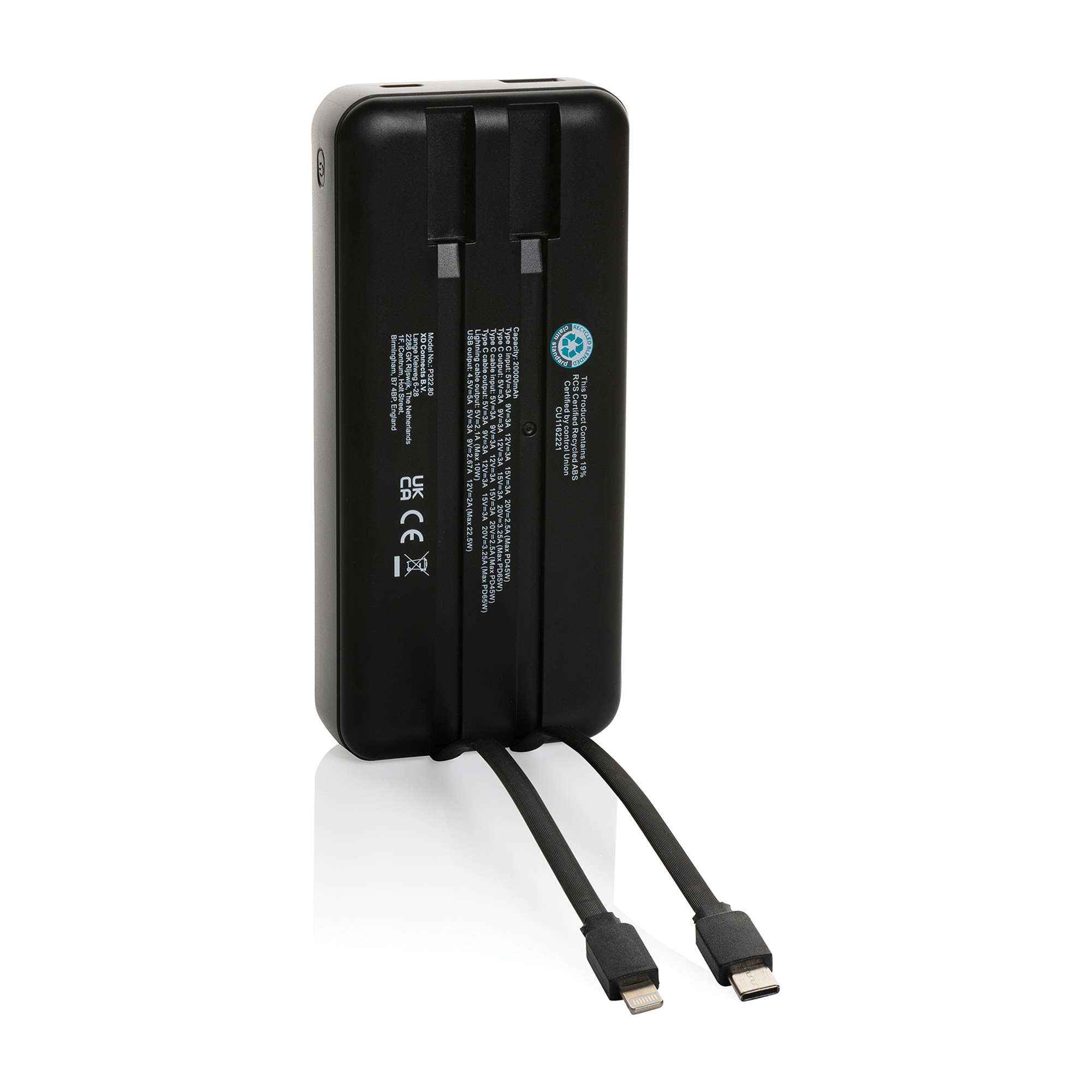 20,000 mAh 20W PD powerbank where the case is made out of RCS certified recycled ABS plastic. RCS (Recycled Claim Standard) is a standard to verify the recycled content of a product throughout the whole supply chain.