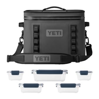 The weekend is young, so pack up your new Hopper Flip 18 and head for the hills. The bigger build suits your larger hauls and longer expeditions. Set out with your lunch while you work for your dinner and have a couple cold ones to kick back with after. Hopper Flip 18 is durable, leakproof and versatile with the HitchPoint Grid for tools and accessories. And like all YETI coolers, it's equipped with superior insulation to keep the cold for days. Kit includes one Large Yeti Food Container, two Medium Yeti Food Containers, and two Small Yeti Food Containers.
