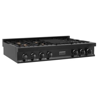 Luxury isn't meant to be desired - its meant to be attainable. Designed in Lake Tahoe, USA, the ZLINE 48'' Porcelain Gas Stovetop in Black Stainless with 7 Gas Burners (RTB-48) provides a professional culinary experience by pairing unmatched performance with timeless style. Achieve ZLINE Attainable Luxury; excellence with innovative features designed to enhance your kitchen's capability.