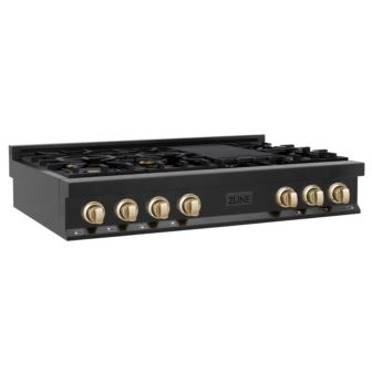 Luxury isn't meant to be desired - it's meant to be attainable. Designed in Lake Tahoe, USA, the ZLINE Autograph Edition 48'' Porcelain Rangetop with 7 Gas Burners in Black Stainless Steel and Polished Gold Accents (RTBZ-48-G) provides a professional culinary experience by pairing unmatched performance with personalized touches. Encompassing limitless beauty, precision, and quality, the Autograph Edition Series creates a luxury look that will transform your space. Achieve ZLINE Attainable Luxury excellence with innovative features designed to enhance your kitchen's capability.