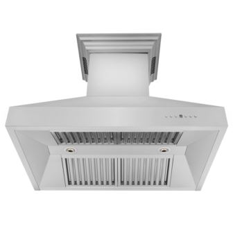 The ZLINE Wall Mount Range Hood with Built-in CrownSound Bluetooth Speakers transforms the seamless, elegant ceiling transition of ZLINE Range Hoods into a high-fidelity, wireless sound system, creating the perfect entertainment area for you and your guests. With CrownSound, you can pair your smart device up to 50 feet away for optimal access and control of audio in your kitchen. The high-performance 700 CFM, 4-speed motor provides all the power you need to ventilate your kitchen while hosting kitchen dance parties or listening quietly and efficiently to your favorite podcasts. With its classic 430 grade stainless steel, this range hood contains rust, temperature, and corrosion-resistant properties to ensure a durable vent hood that will last for years to come. Enjoy modern features, including built-in LED lighting for an illuminated culinary experience and dishwasher-safe stainless steel baffle filters for easy clean-up. This wall mount range hood has a ducted vent with easy, simple installation. Achieve a functional, modern upgrade that is perfectly harmonized in your favorite ZLINE Range Hood designs. ZLINE continues to revolutionize the industry by providing our customers with Attainable Luxury. ZLINE proudly stands by the longevity and durability of their range hoods alongside its 3-year manufacturer parts warranty.