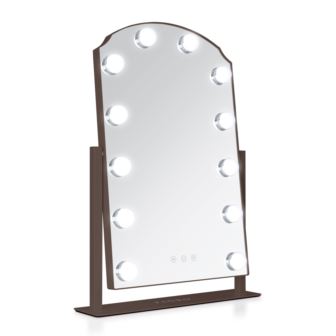 Hollywood glamour, reimagined. The scalloped edge design brings a touch of timeless elegance as it frames twelve ultra-bright bulbs with touch dimming and three color settings so your makeup reads true in any light. A generous 12'' x 19'' viewing area and angle-adjustable tilt give you a flattering full view, and optical-quality glass keeps every detail crisp. The clean plug-in design delivers instant brilliance for everyday elegance.