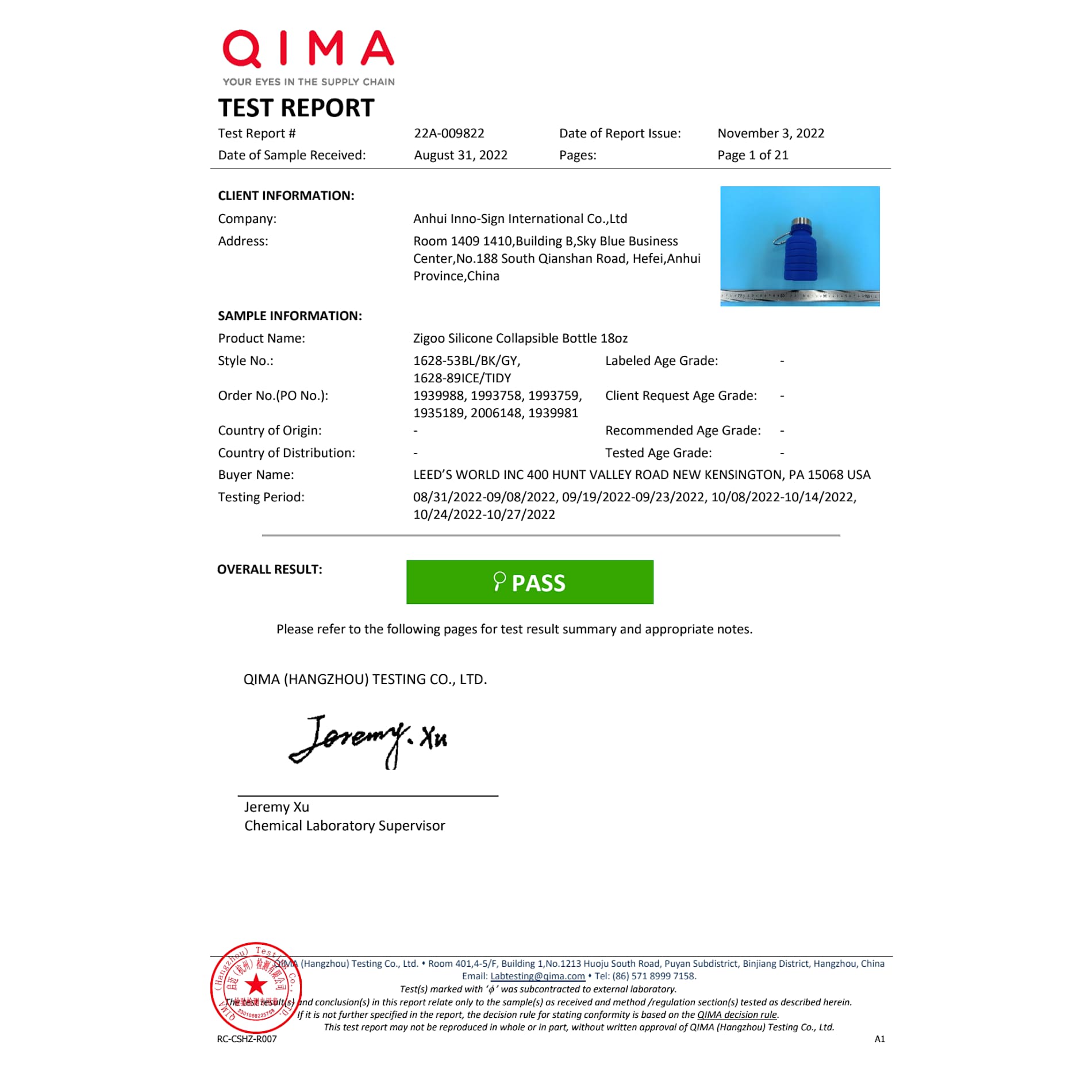 The Zigoo Bottle features a collapsible and lightweight design which helps you save 50% space. It's portable and easy to store. It reserves 18oz liquid with only 198g in weight and it can collapse from 9.2inch to 5.45 inch in height. Bottle is made from food grade silicone including a stainless steel lid with carabiner attached. It is leak proof and is great for all types of activities and sports. Only the bottle (not lid) is dishwasher safe for easy cleaning and is designed with a wide mouth opening for filling ice cubes. Includes matching carabiner. BPA Free. 18oz. Laser engraving silver Drinkware will result in a subtle, tone on tone decoration “The placement of the carabiner will vary in relation to the imprint on the lid”.